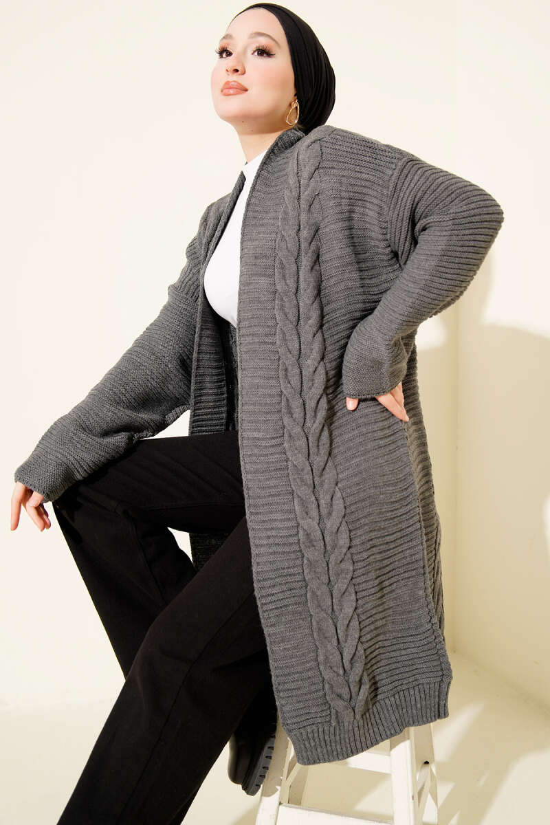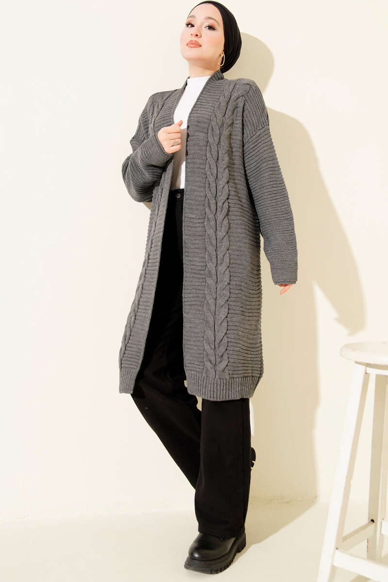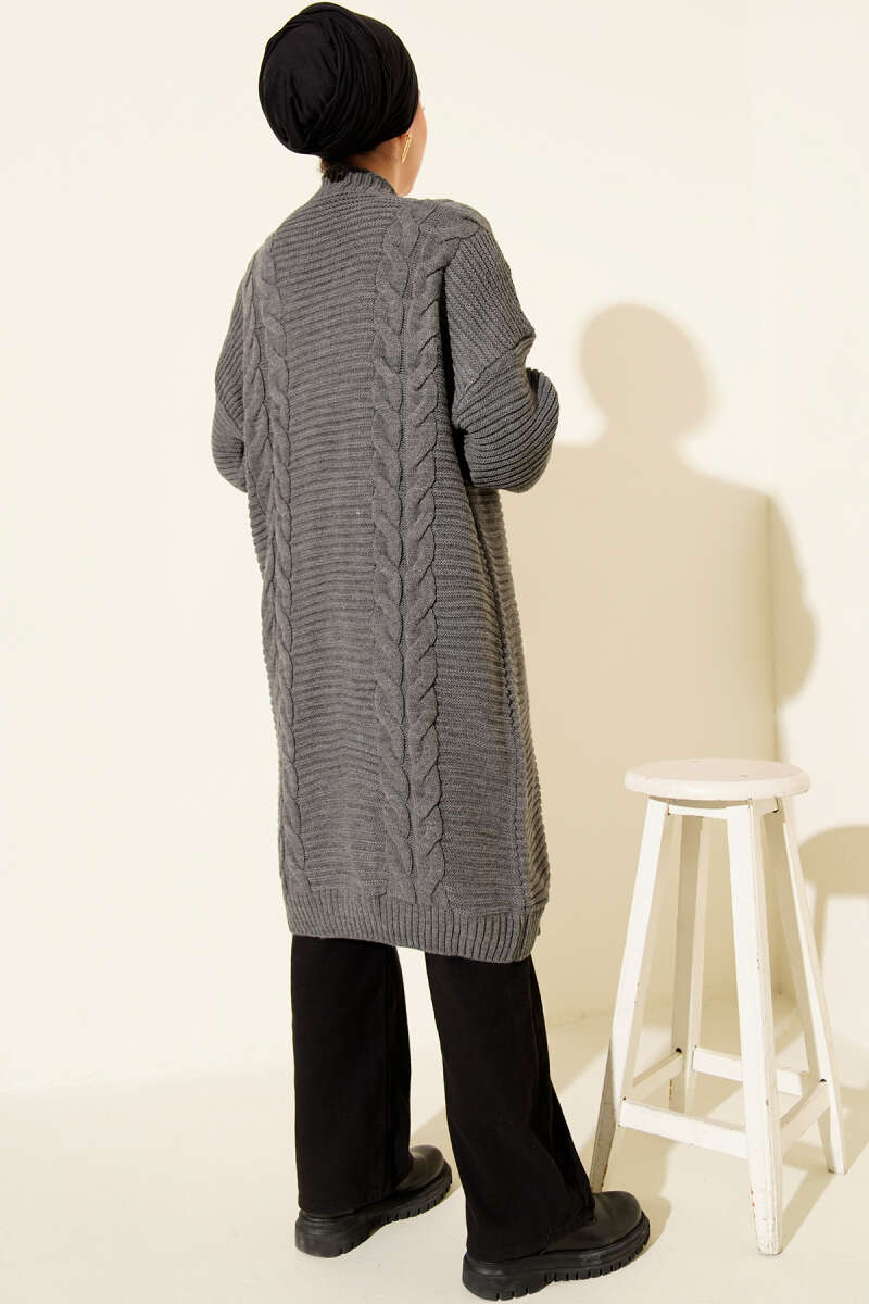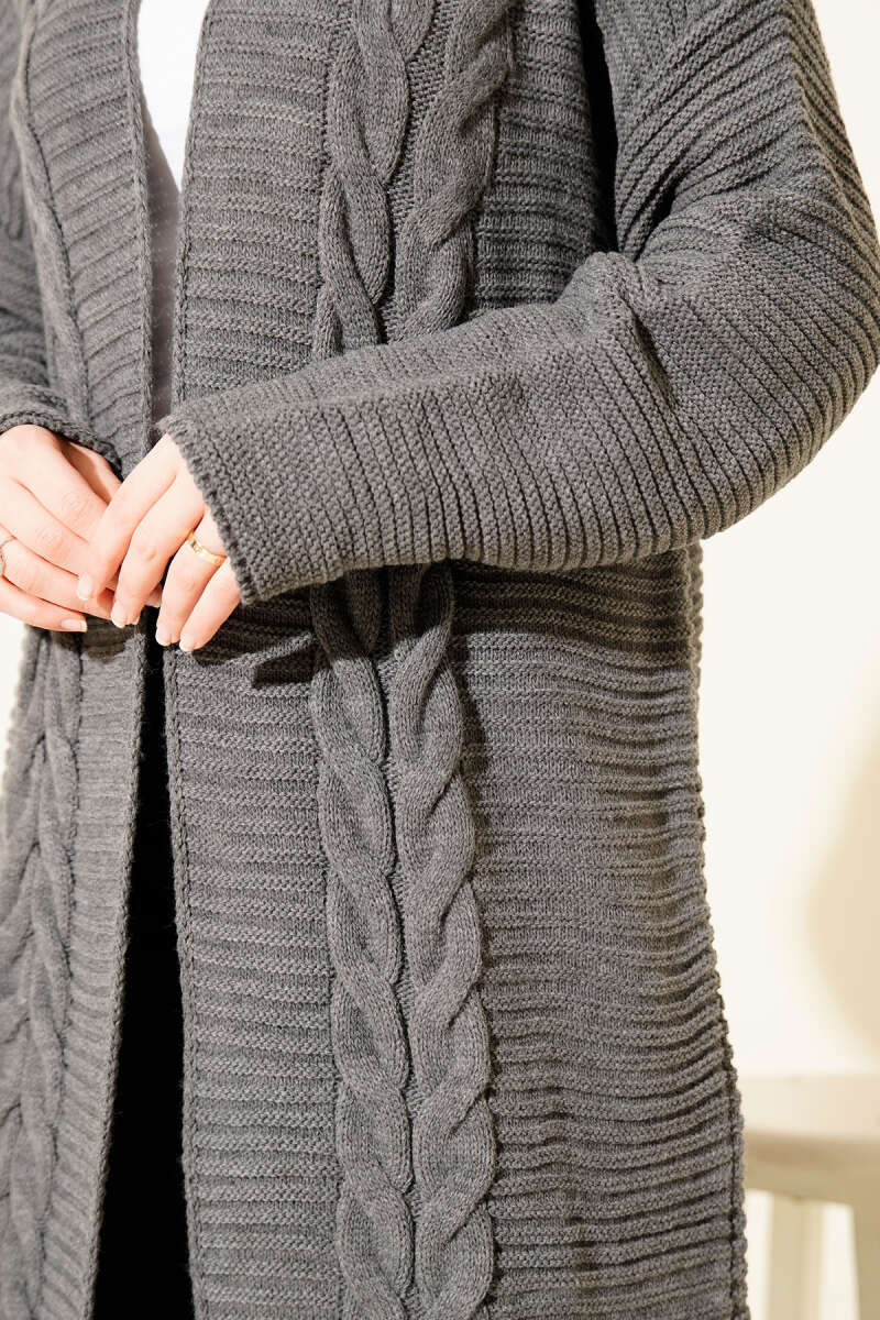 Yatay Çizgi Kabartmalı Triko Hırka Gri