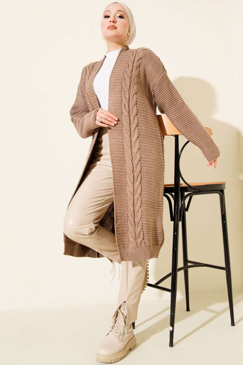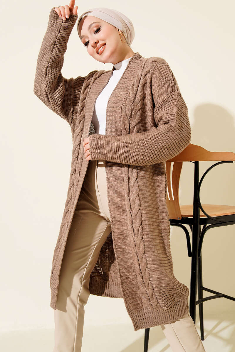 Yatay Çizgi Kabartmalı Triko Hırka Kahve