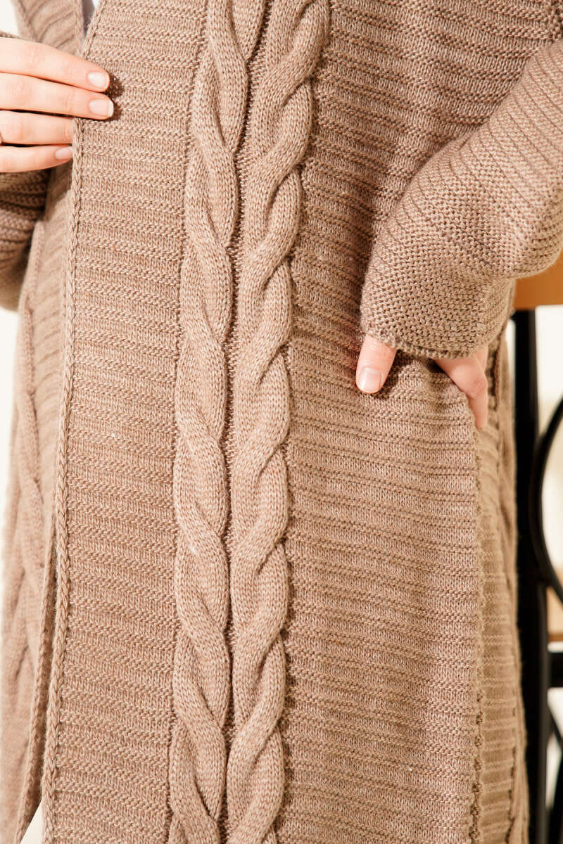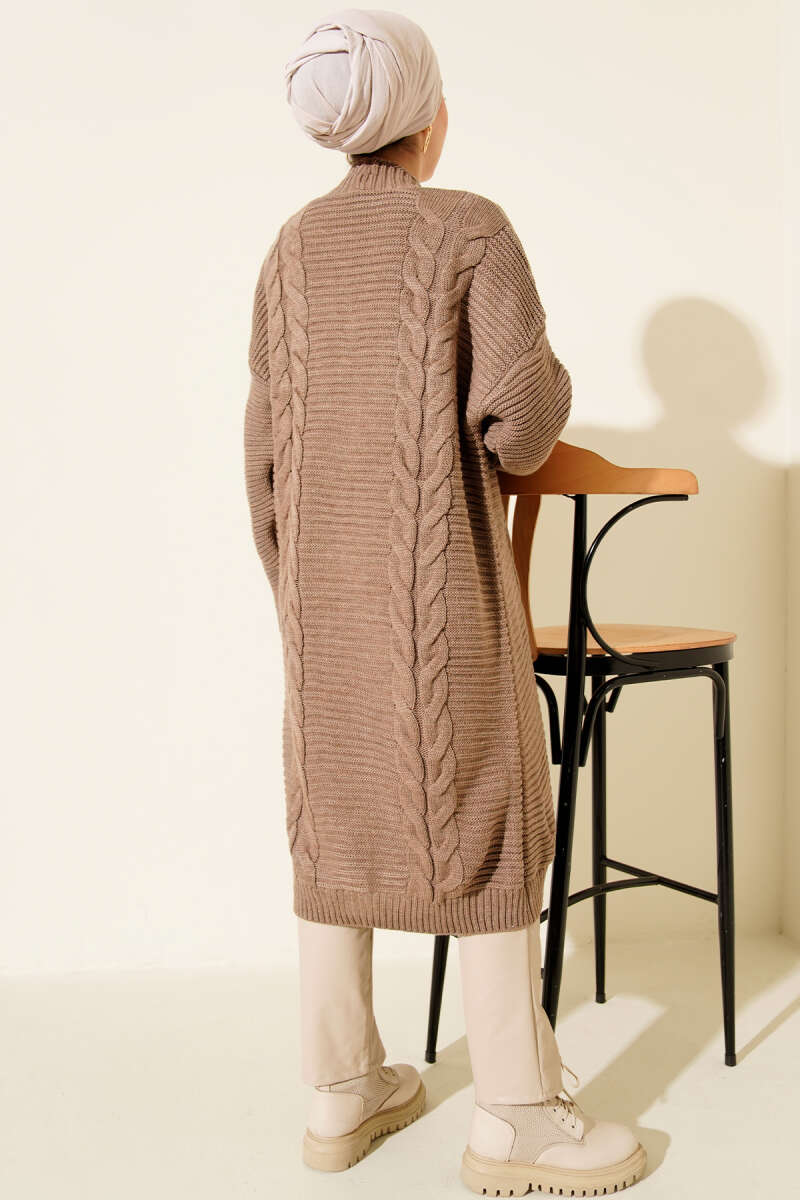 Yatay Çizgi Kabartmalı Triko Hırka Bronz