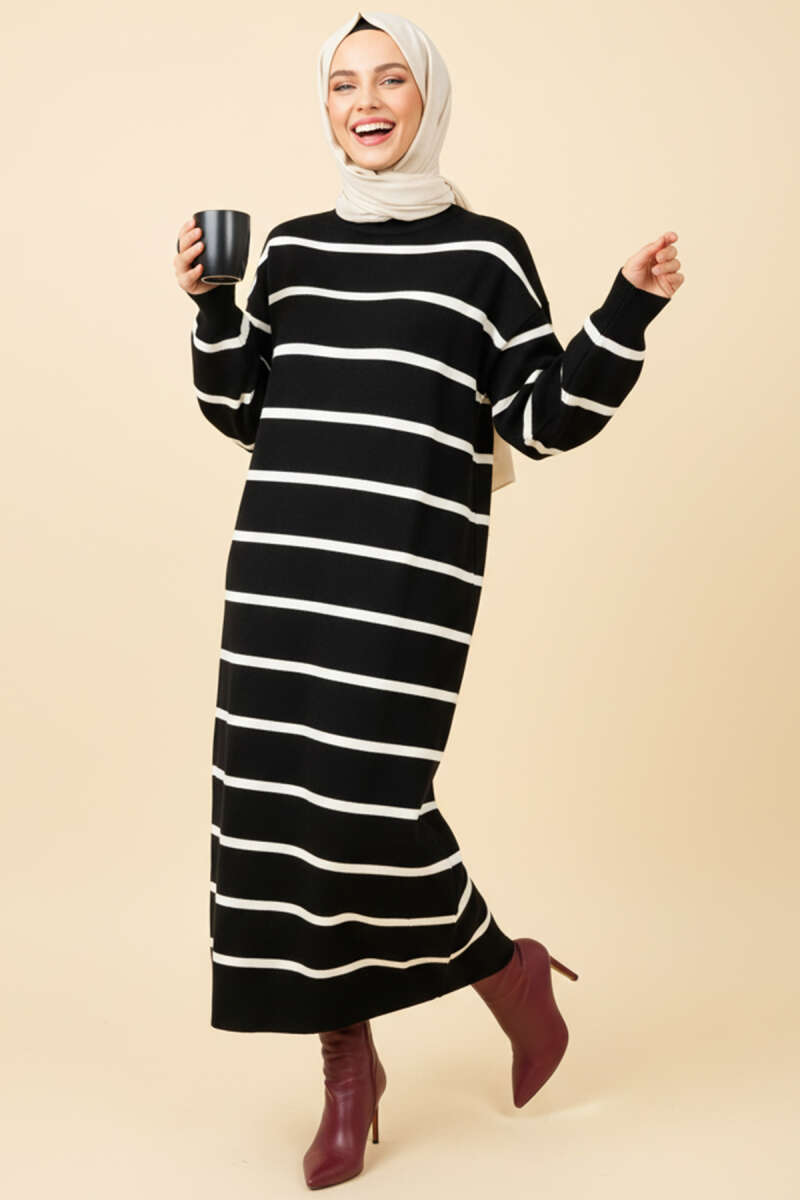 Astarlı Kuşaklı Uzun Trençkot Siyah