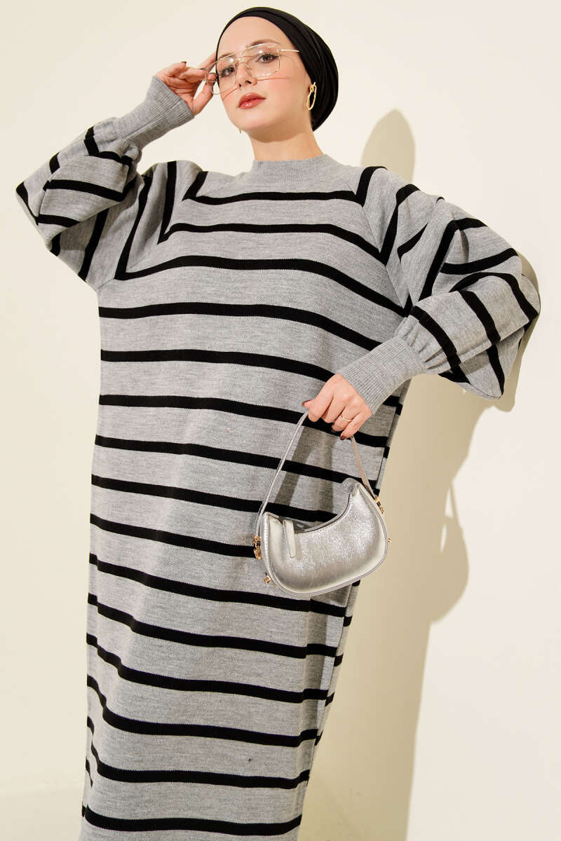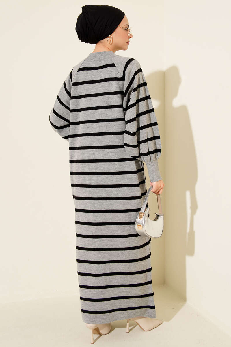 Yatay Çizgili Basic Triko Elbise Lacivert