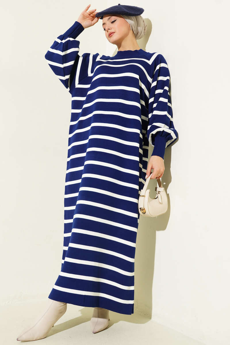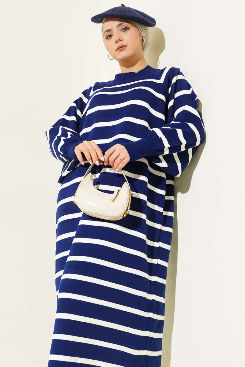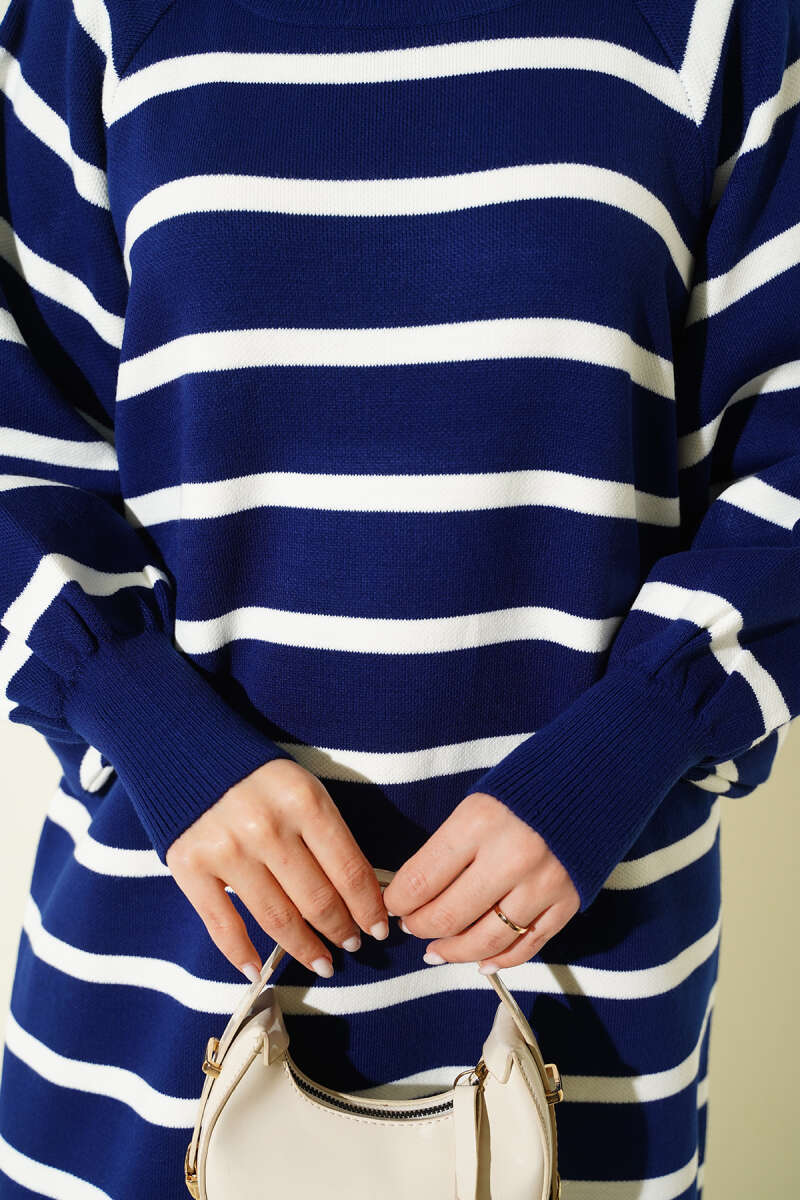 Çoban Dikiş Detaylı Triko Tunik Lacivert