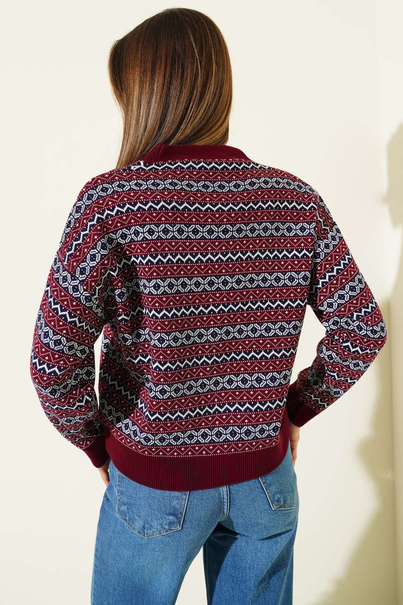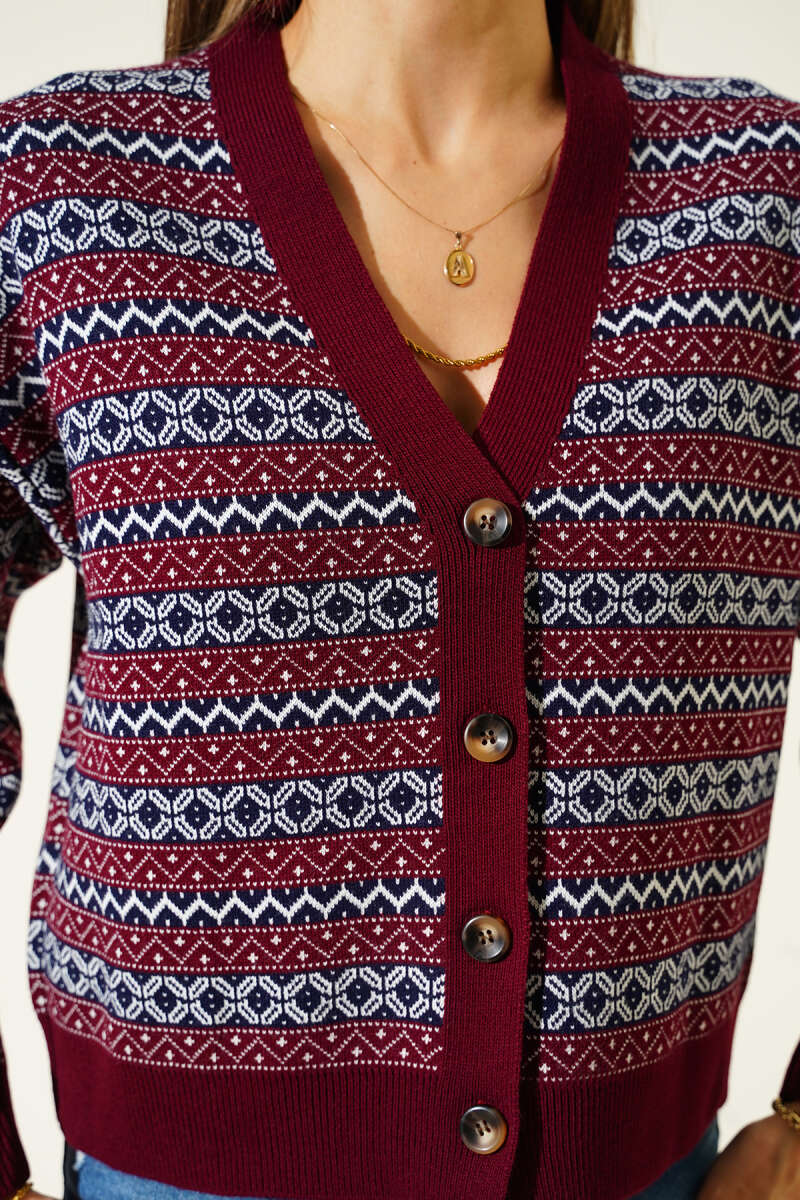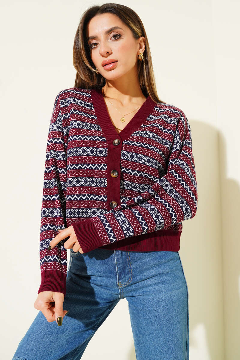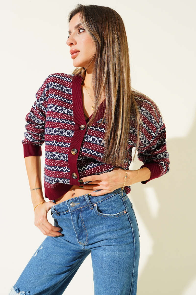 Sahte Cepli Tüvit Triko Hırka Bordo