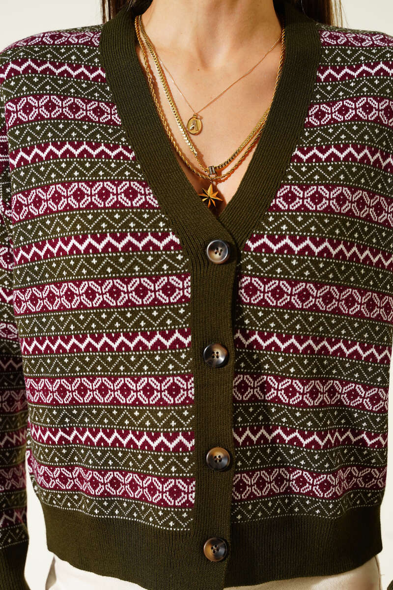 Leopar Desenli Şardonlu Triko Hırka Latte