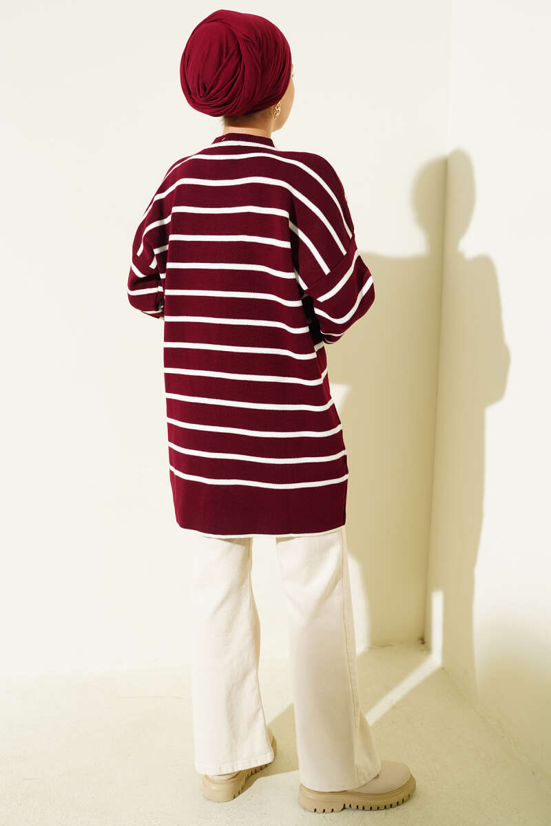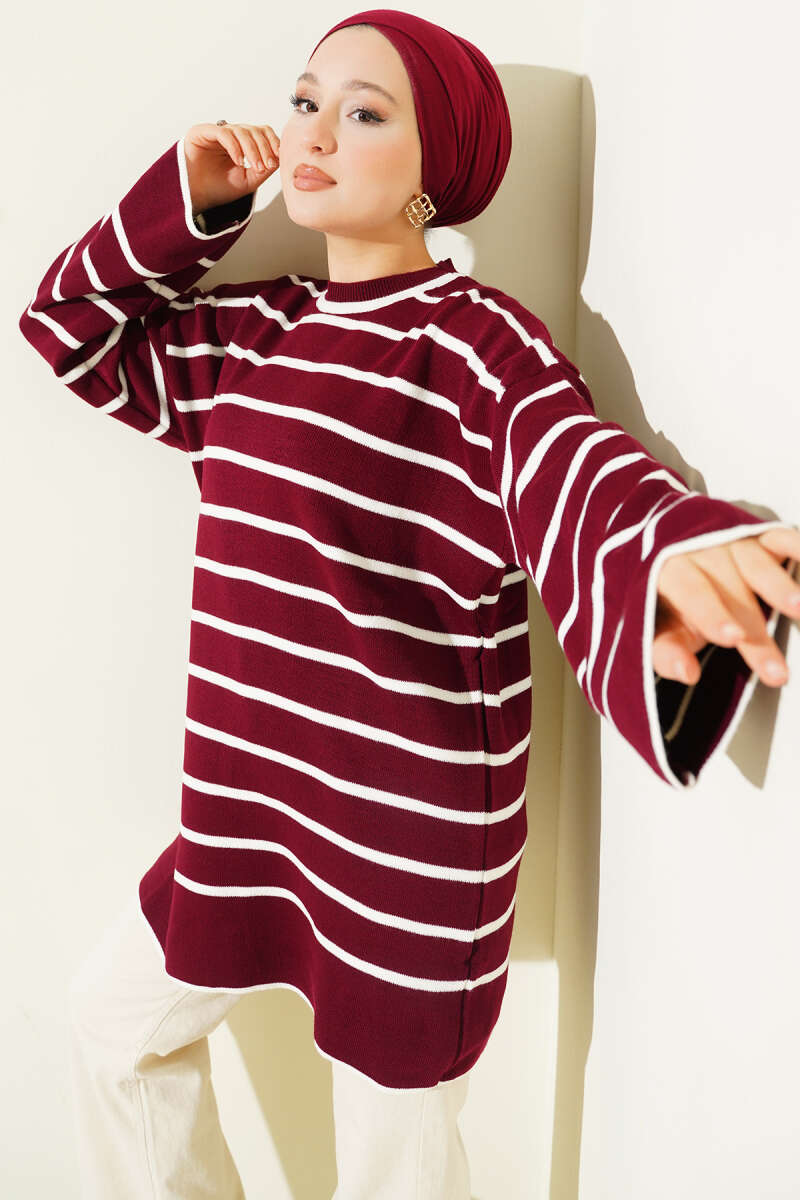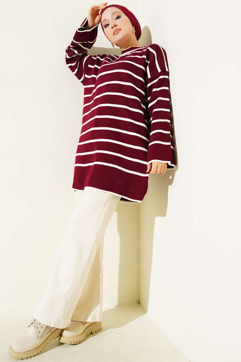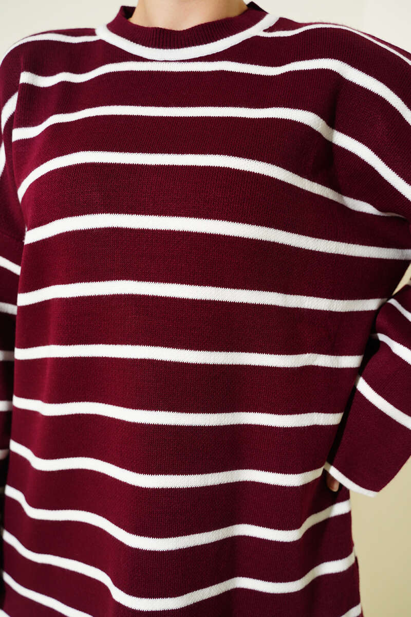 Kol Ribanalı Oversize Triko Tunik Bordo