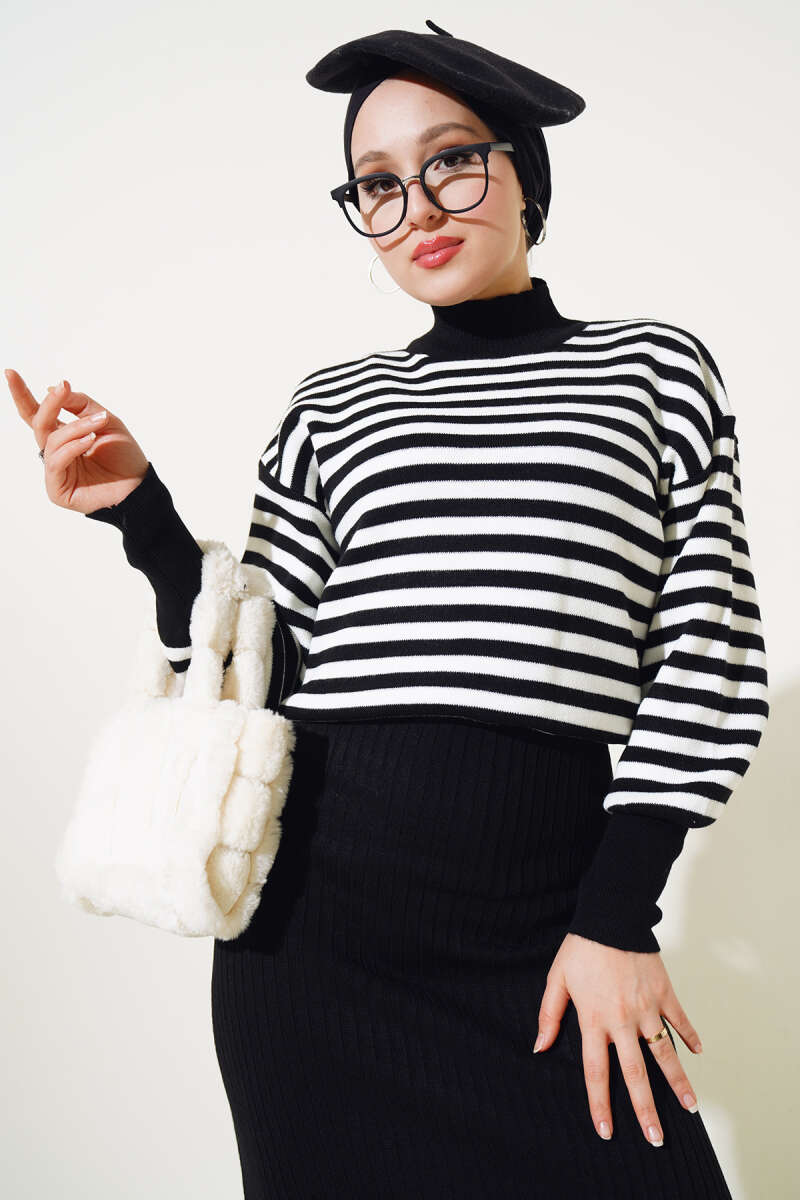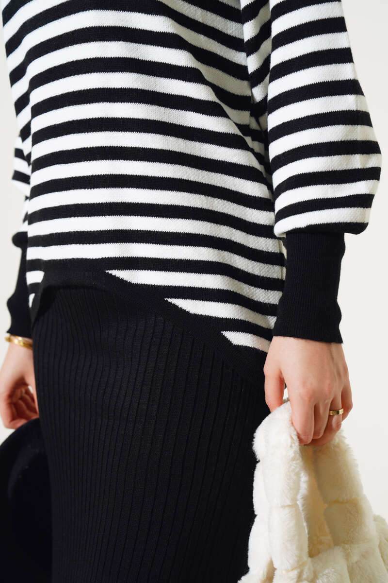 Çizgili Bolerolu Triko İkili Takım Siyah