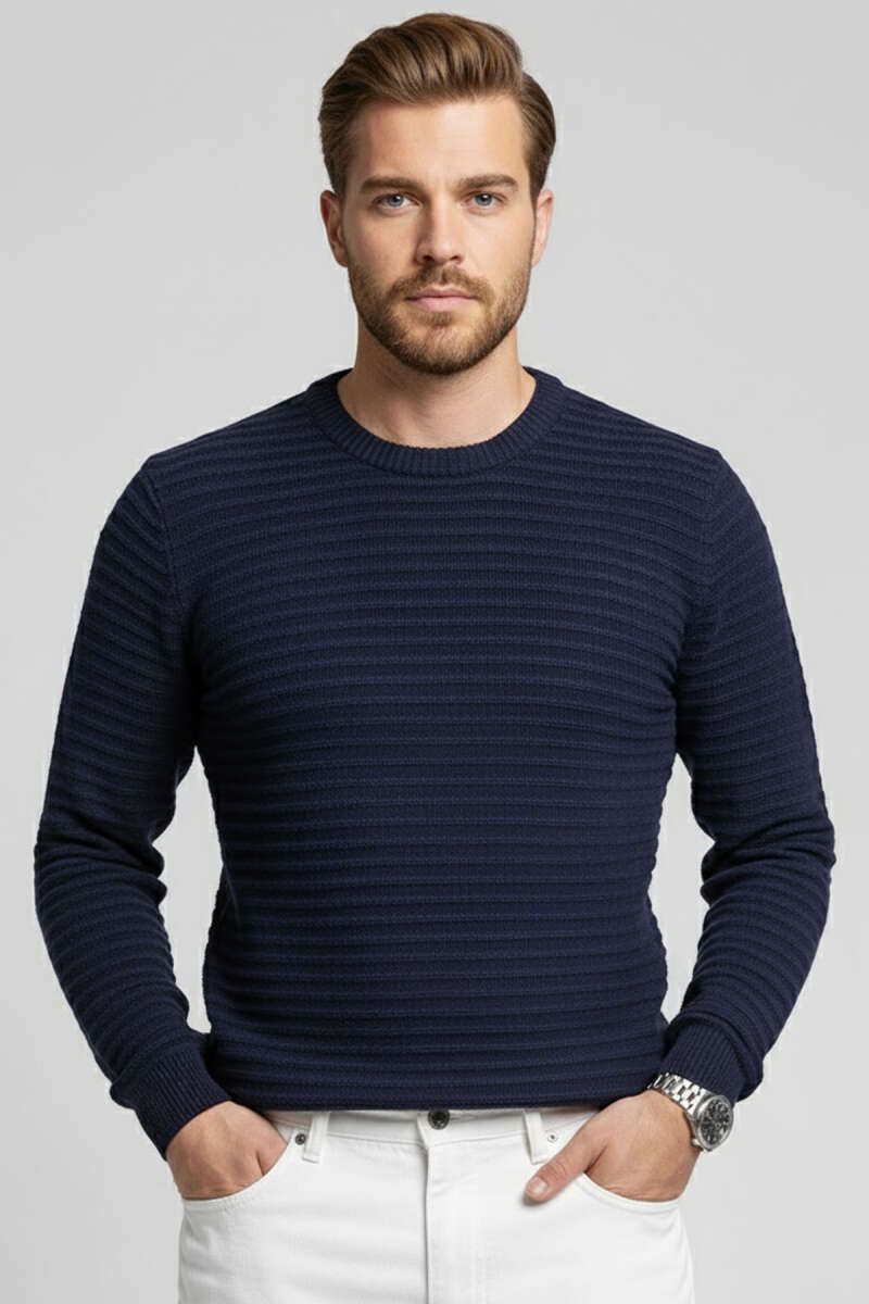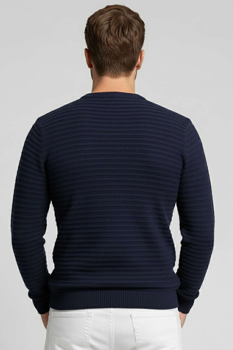 Polo Yaka Çizgi Detaylı Erkek Kazak Lacivert
