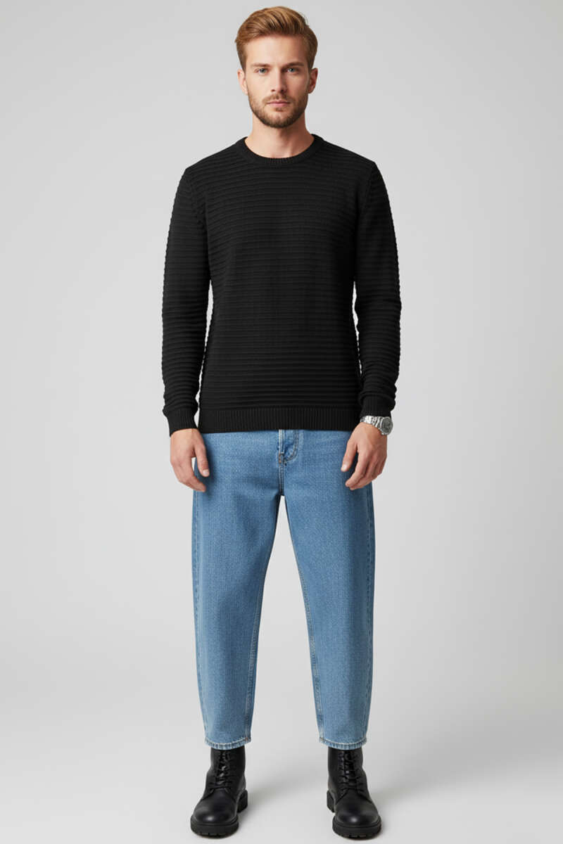Tam Balıkçı Yaka Triko Erkek Kazak Siyah