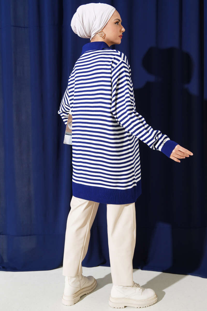 Yatay Çizgi Detaylı Basic Triko Tunik Kahve