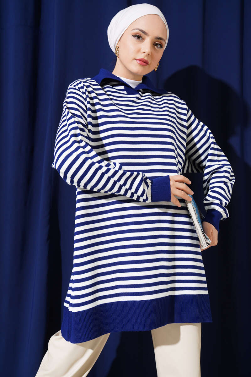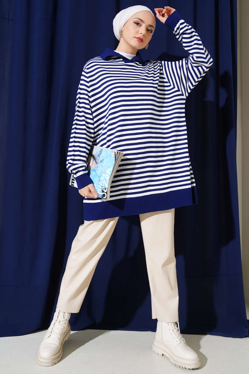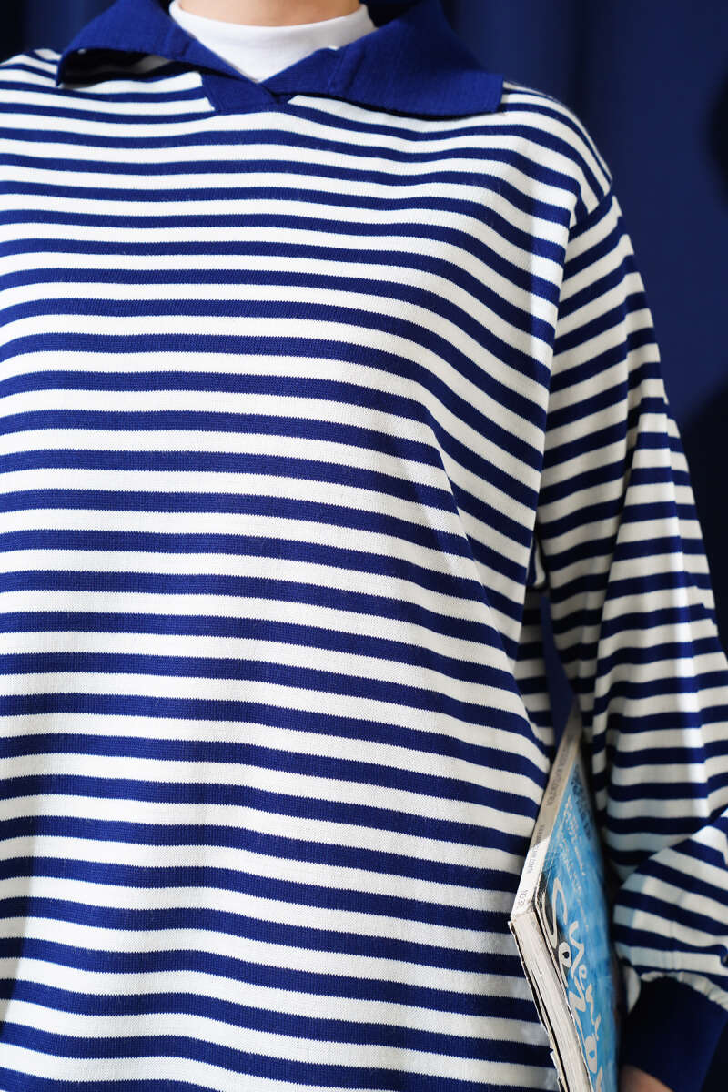 Yatay Çizgi Detaylı Basic Triko Tunik Siyah