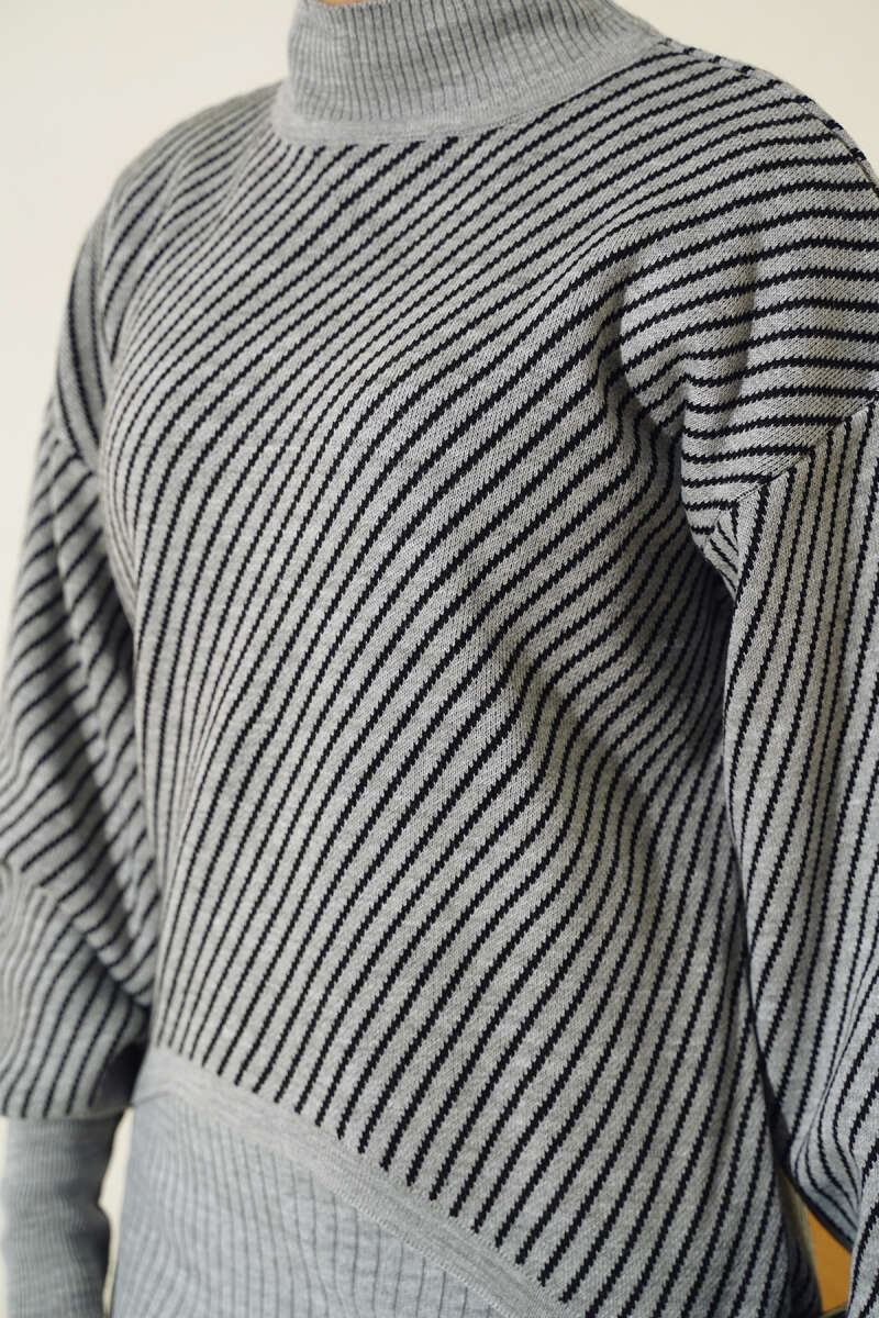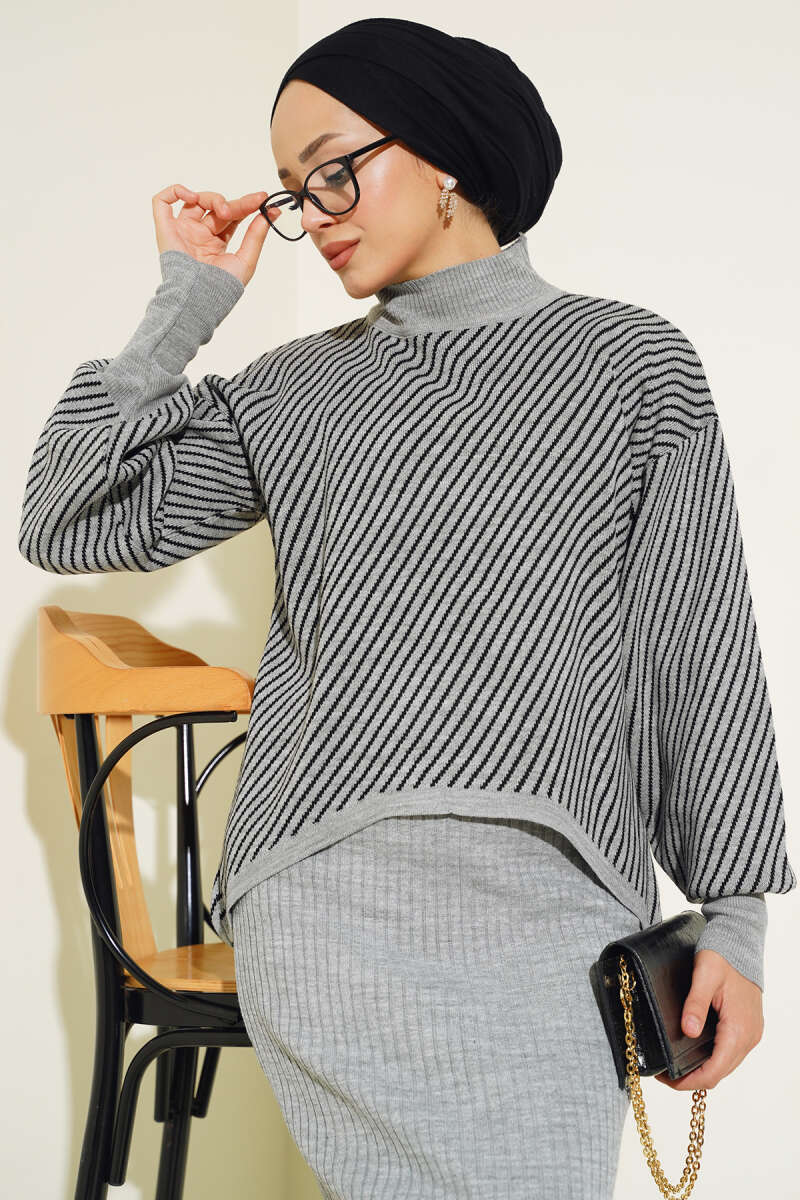Atkı Detaylı Çizgili Triko İkili Takım Su Yeşili