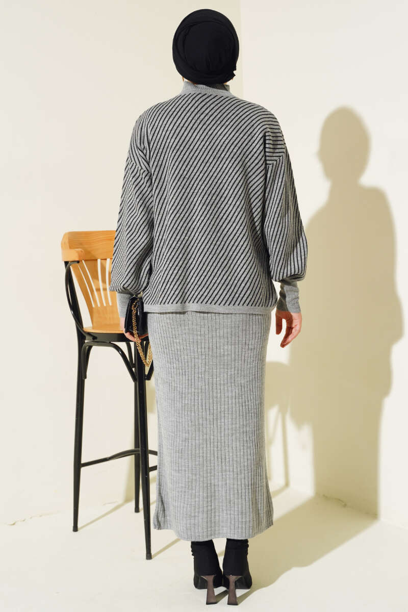 Dikiş Detaylı Basic Triko İkili Takım Füme