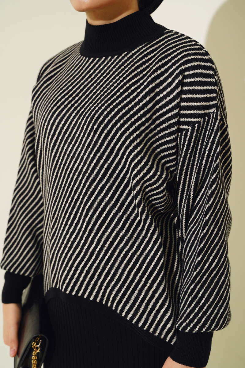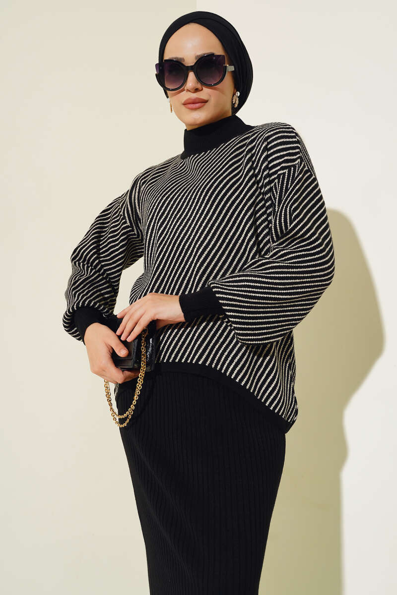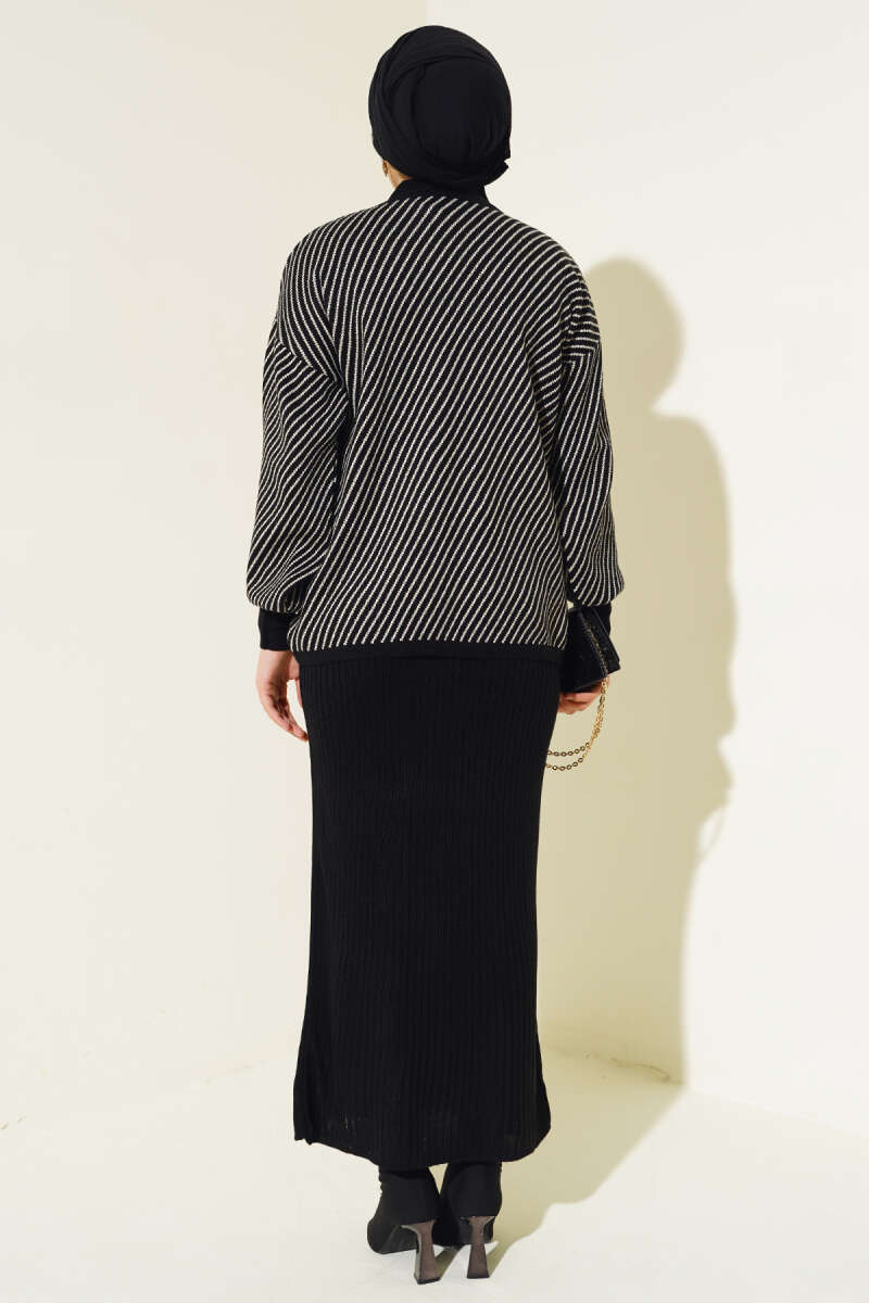 Dikiş Detaylı Basic Triko İkili Takım Siyah