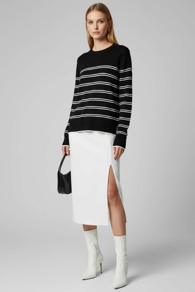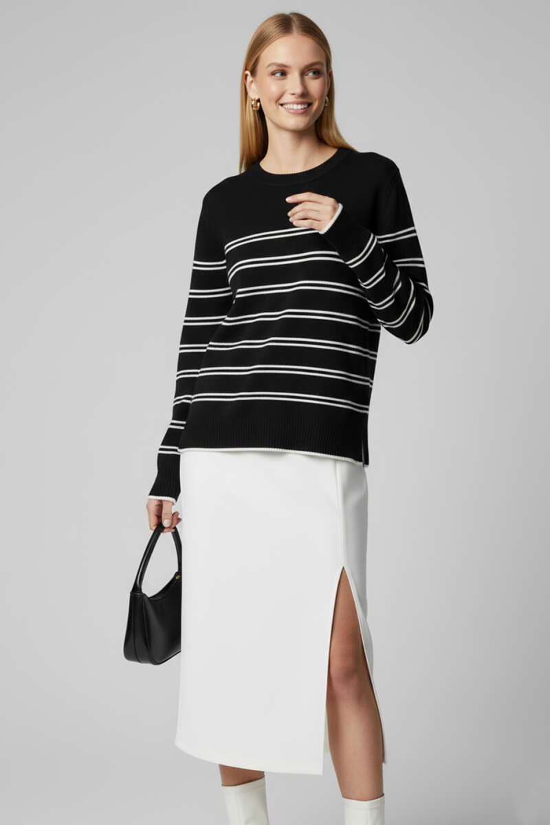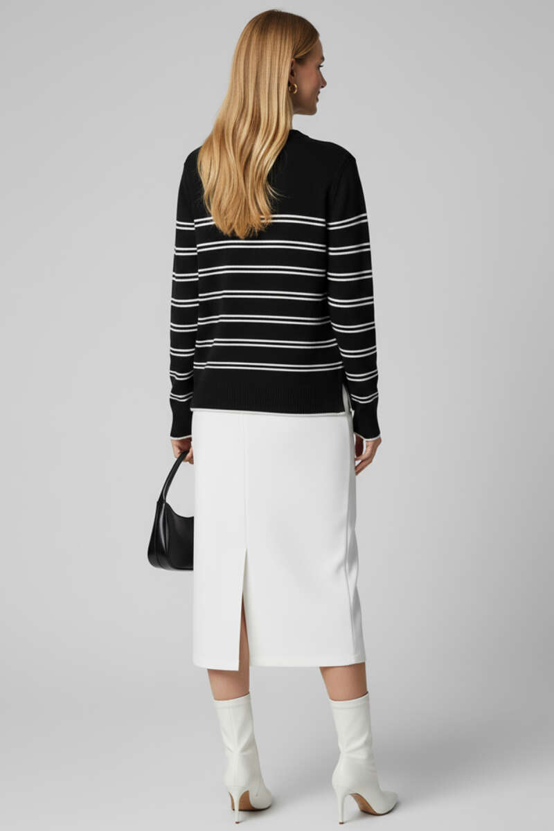 Yatay Çizgili Triko Kazak Siyah