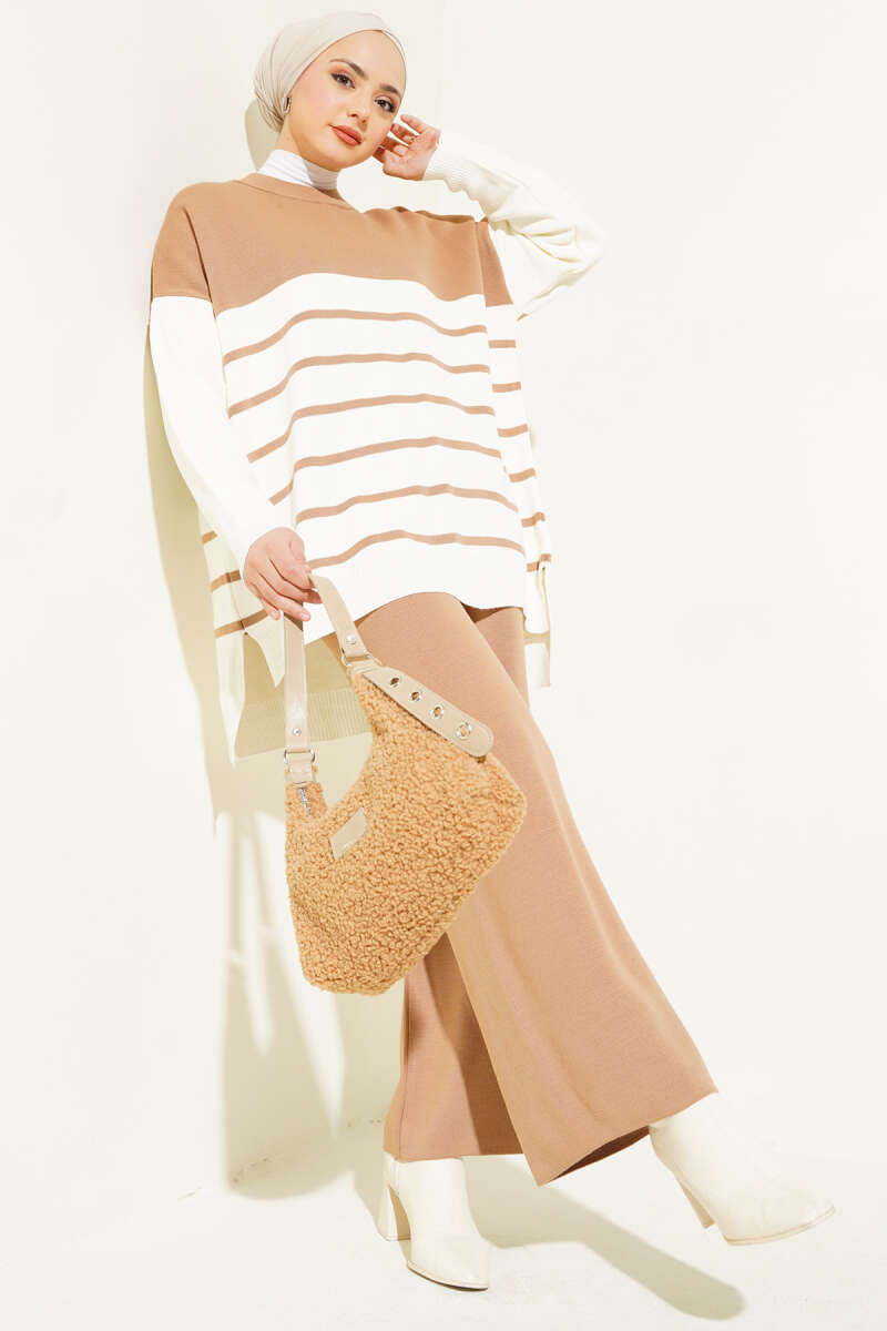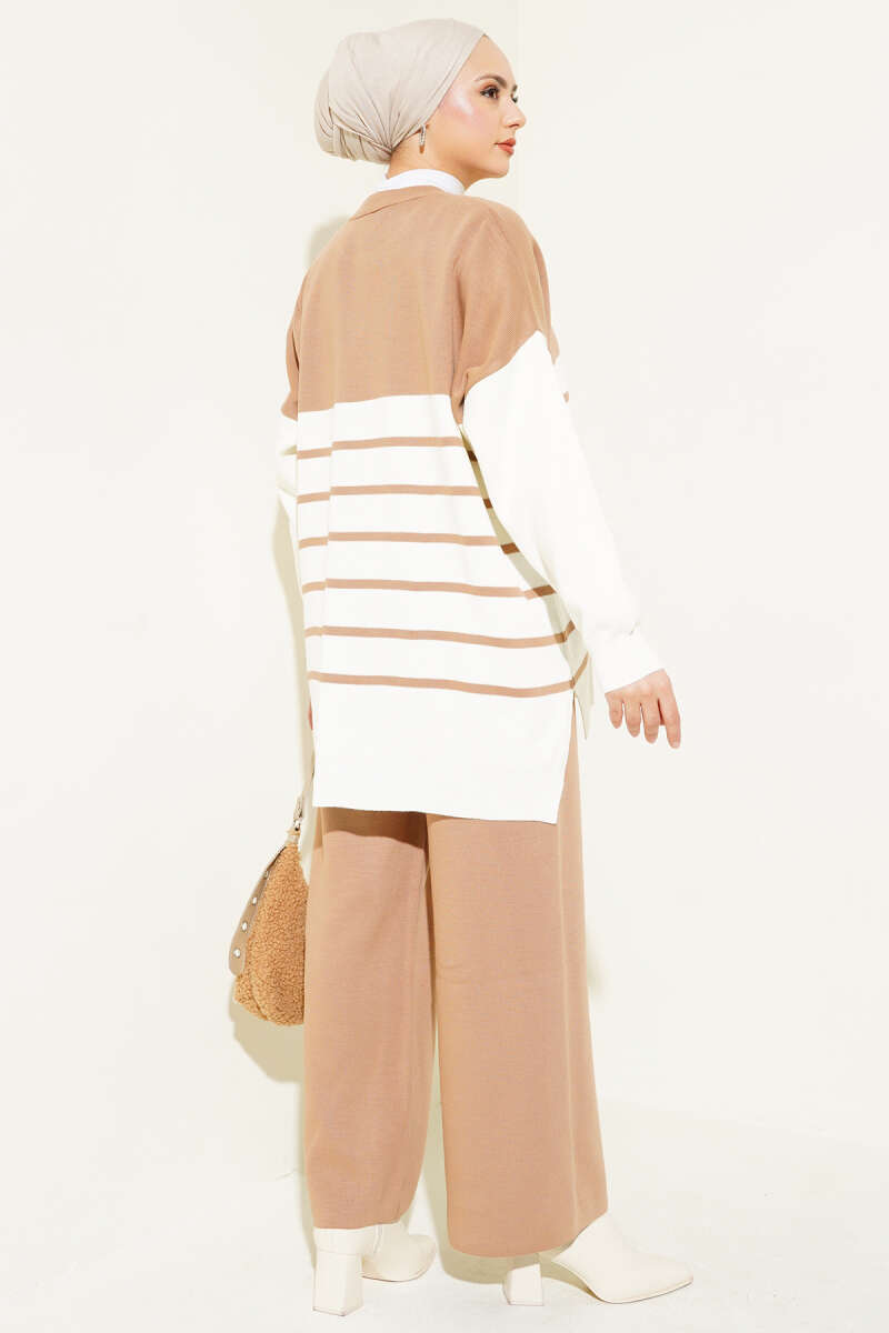 Dikiş Detaylı Basic Triko İkili Takım Vizon