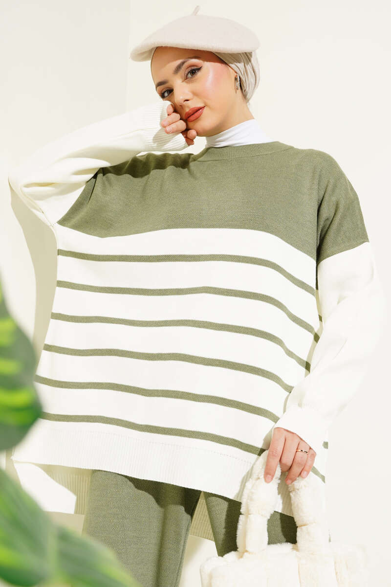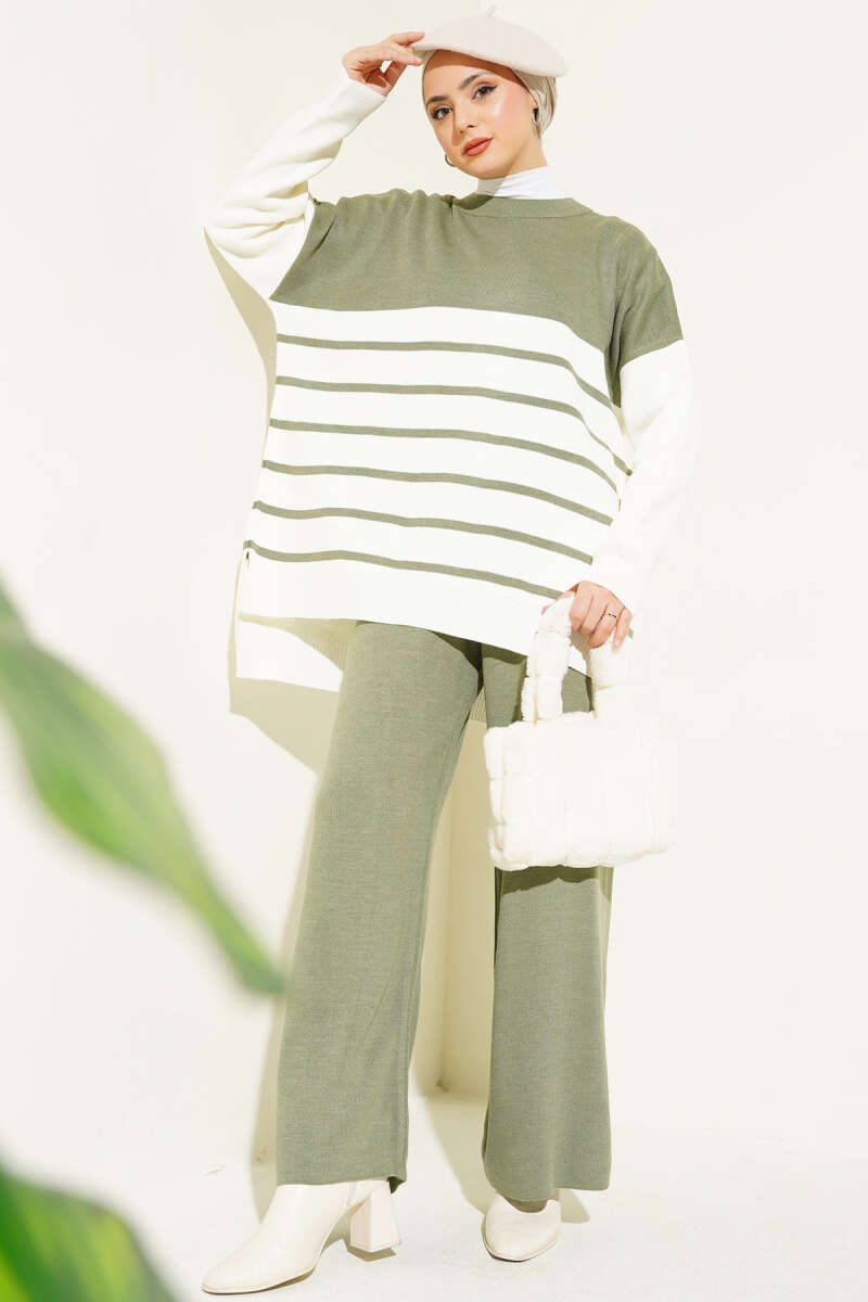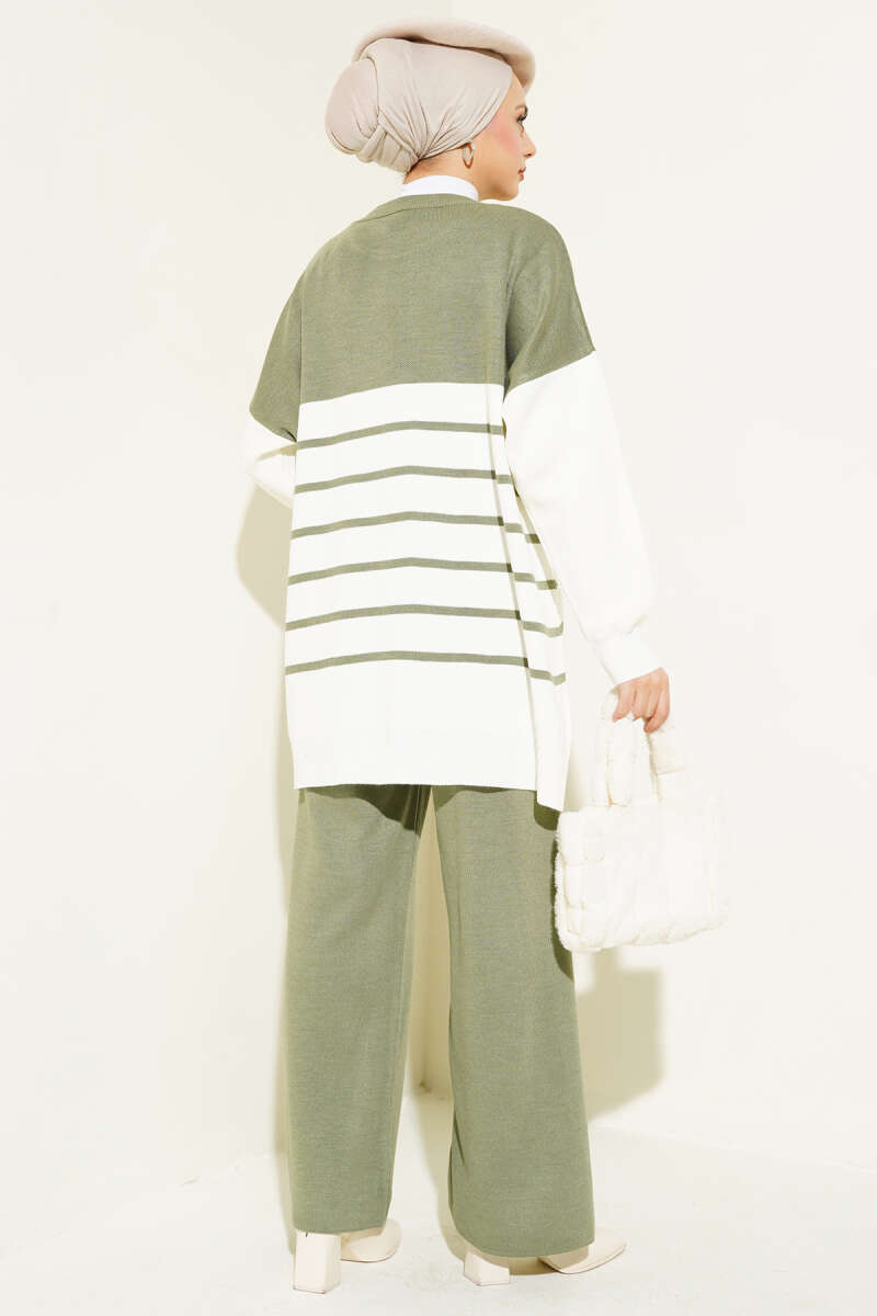 Dikiş Detaylı Basic Triko İkili Takım Haki