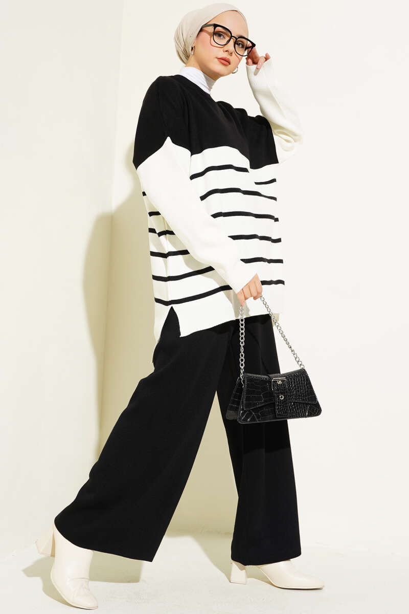 Dikiş Detaylı Basic Triko İkili Takım Siyah