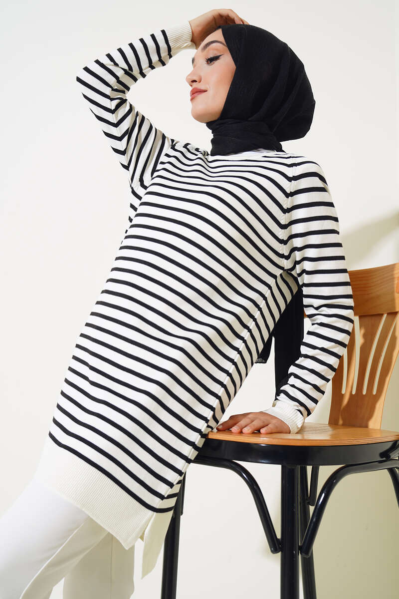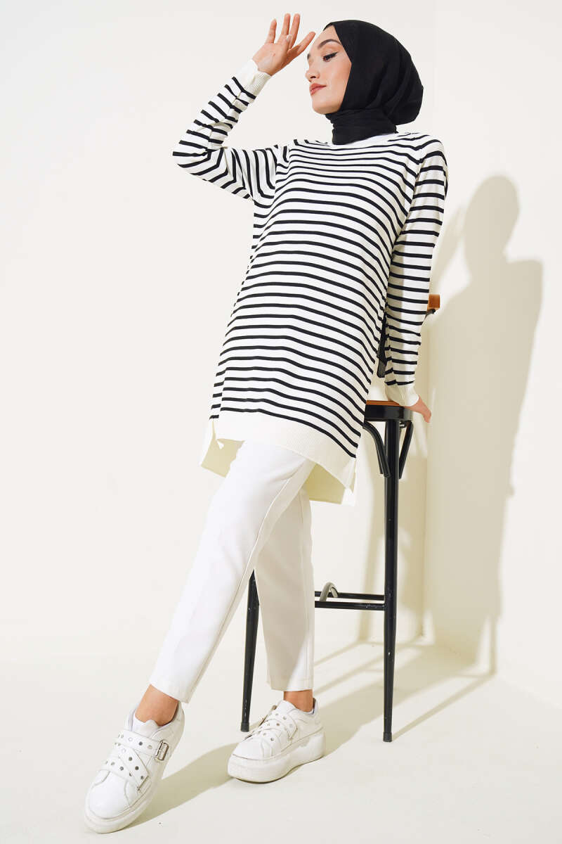 Çizgi Baklava Desen Triko Tunik Gül Kurusu