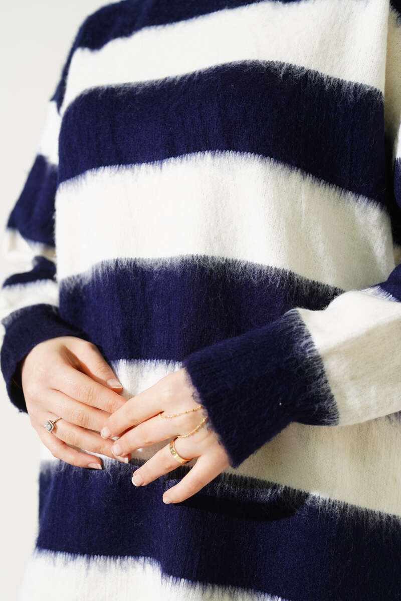 Yatay Çizgili Yumoş Triko Tunik Lacivert
