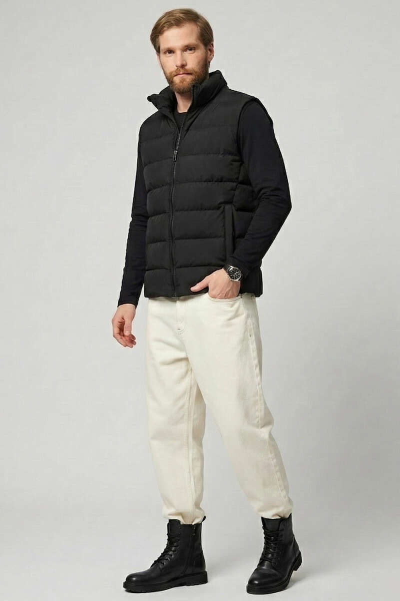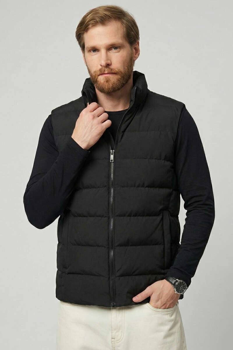 Yatay Dikişli Erkek Şişme Yelek Siyah