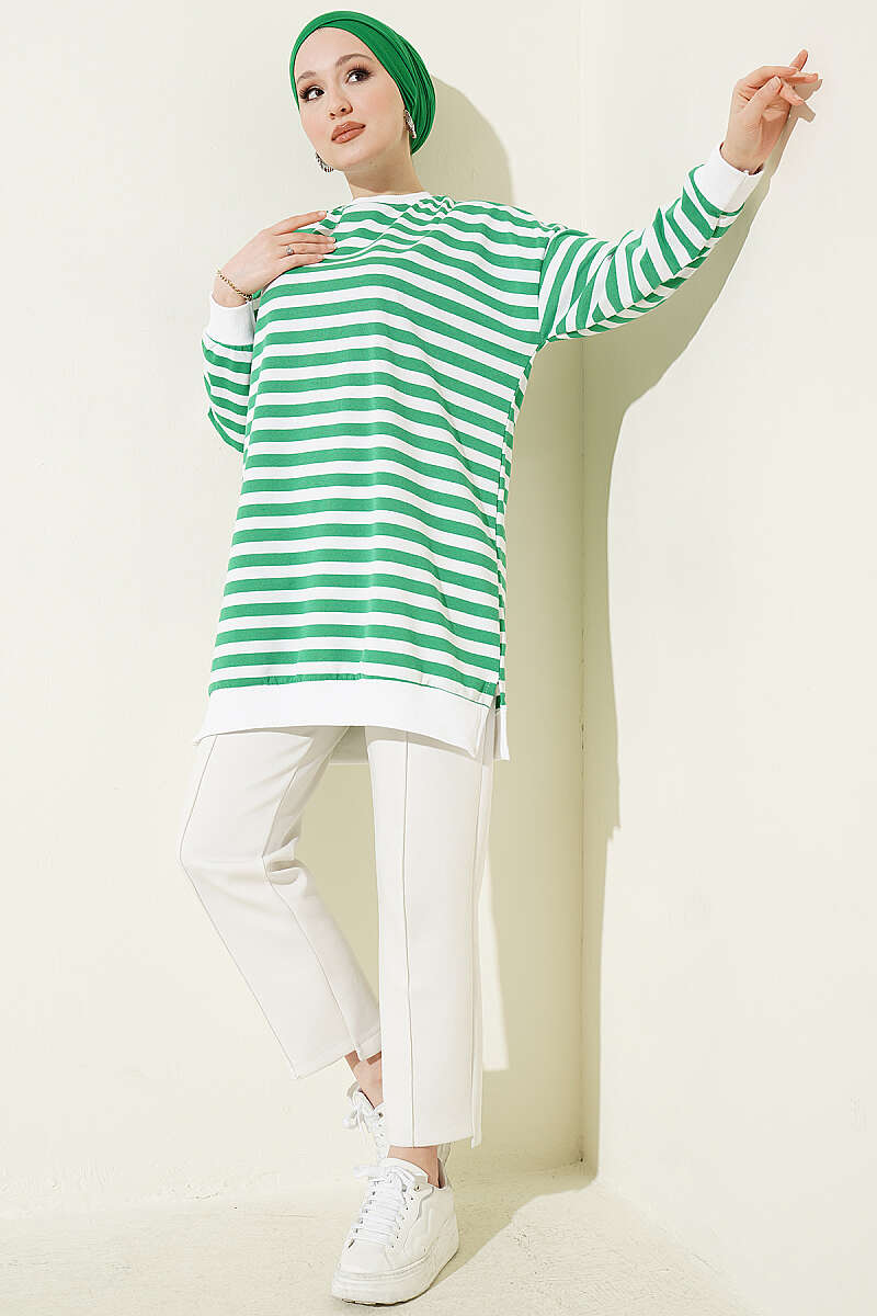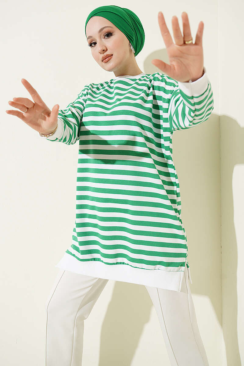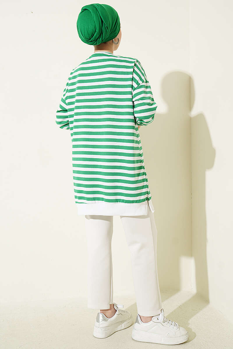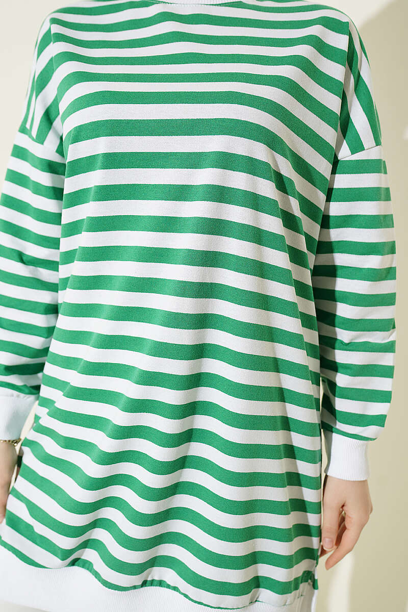 Yatay İnce Çizgili Ribanalı Tunik Yeşil