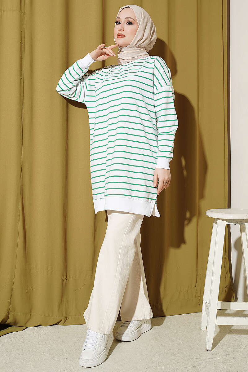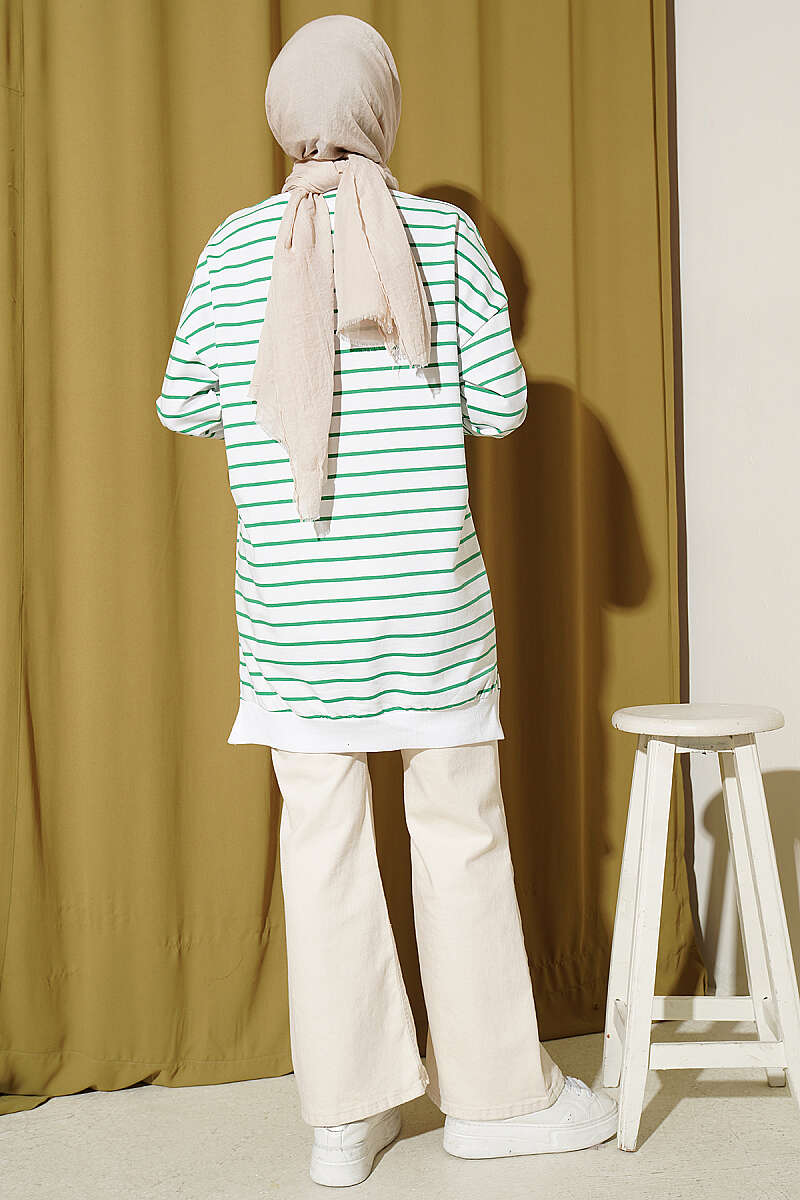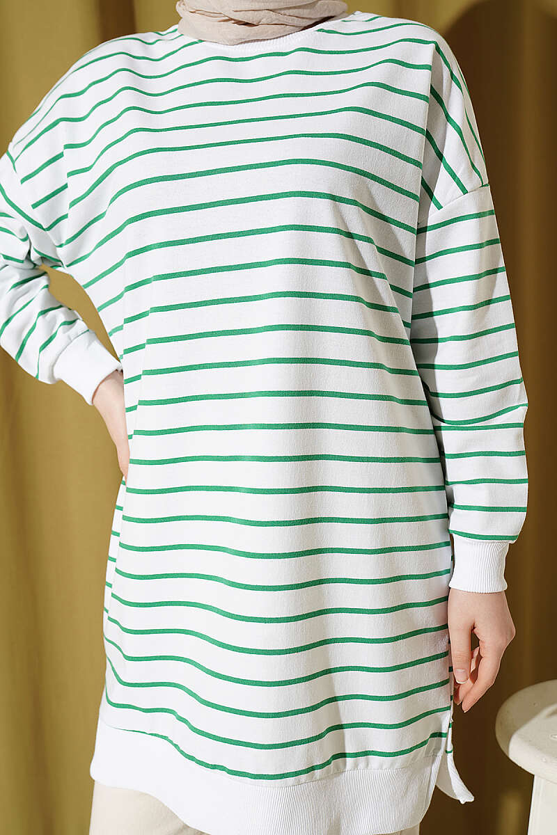 Yatay İnce Çizgili Ribanalı Tunik Yeşil