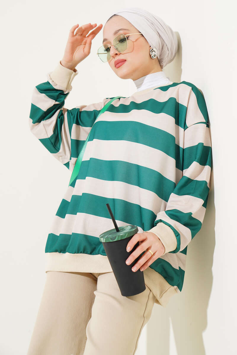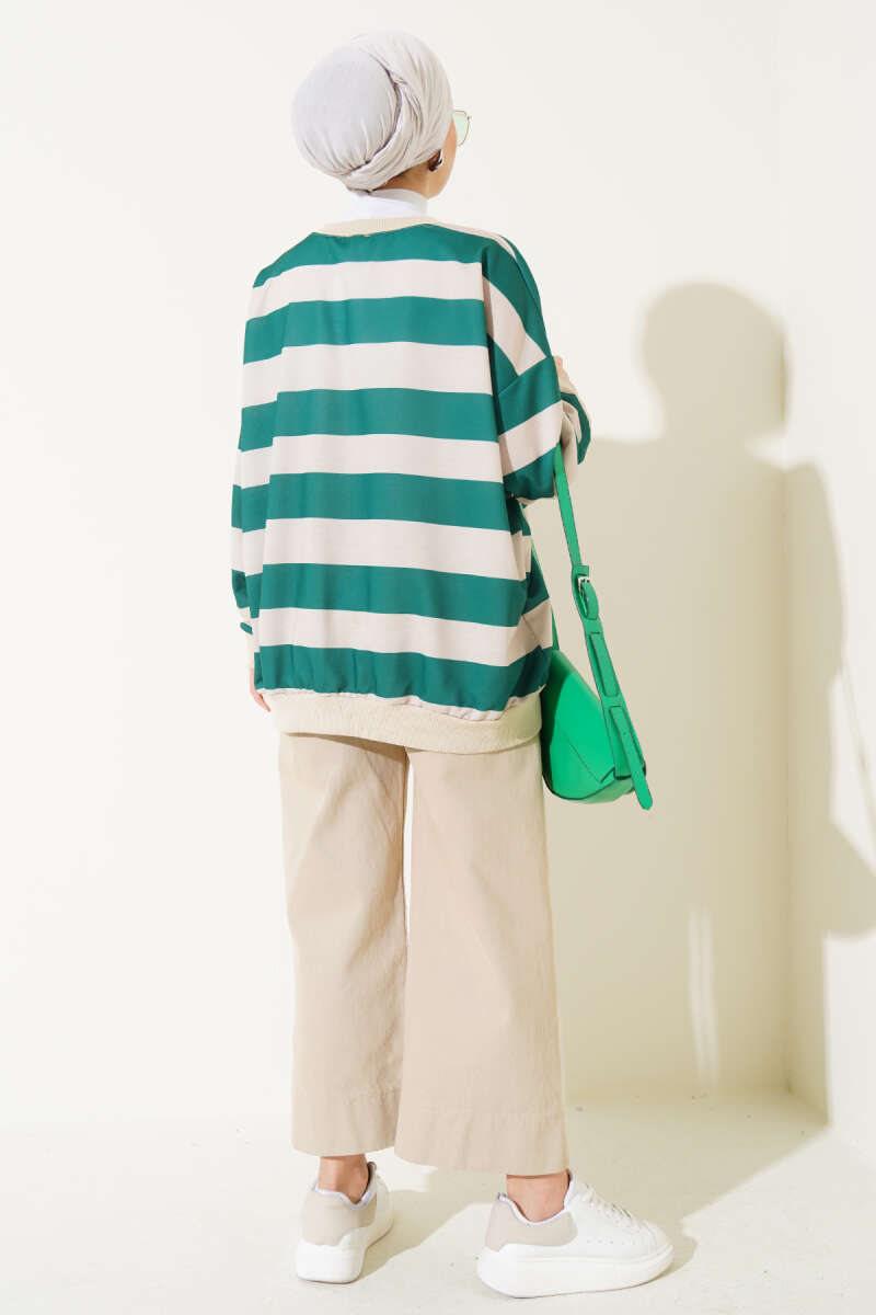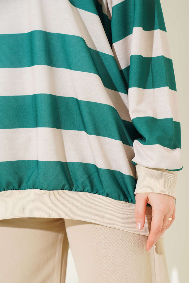 Yatay Kalın Çizgili Salaş Tunik Yeşil