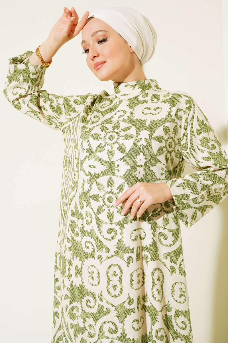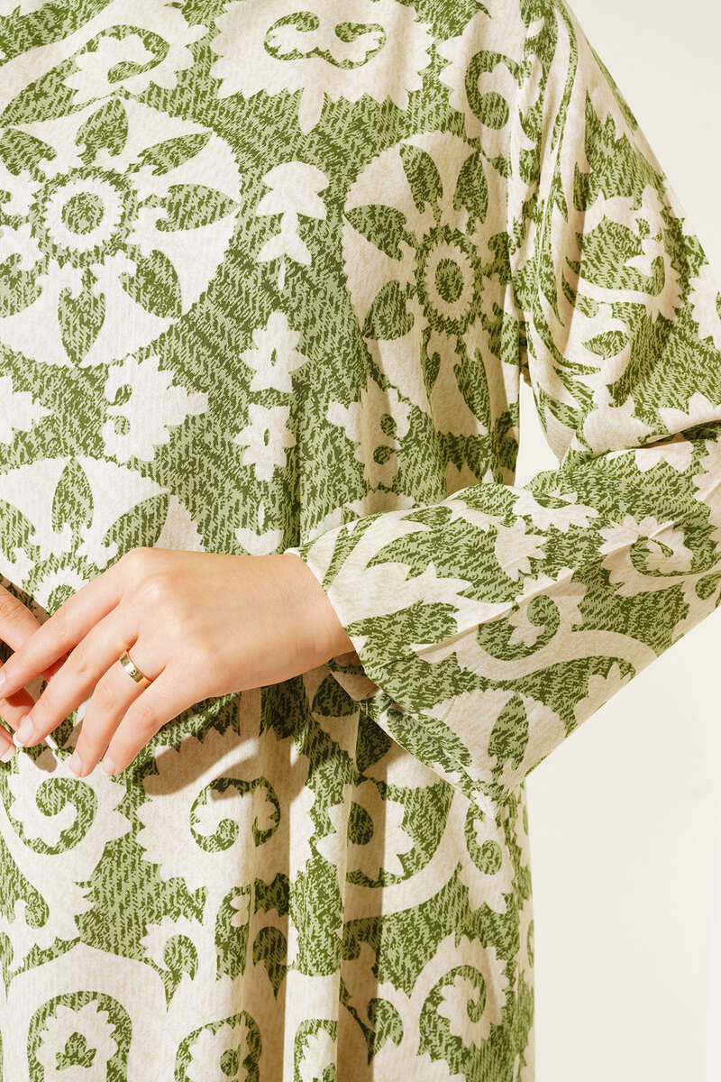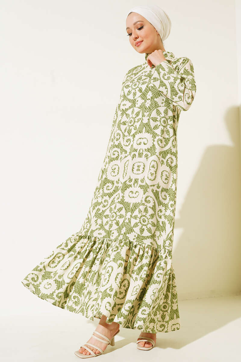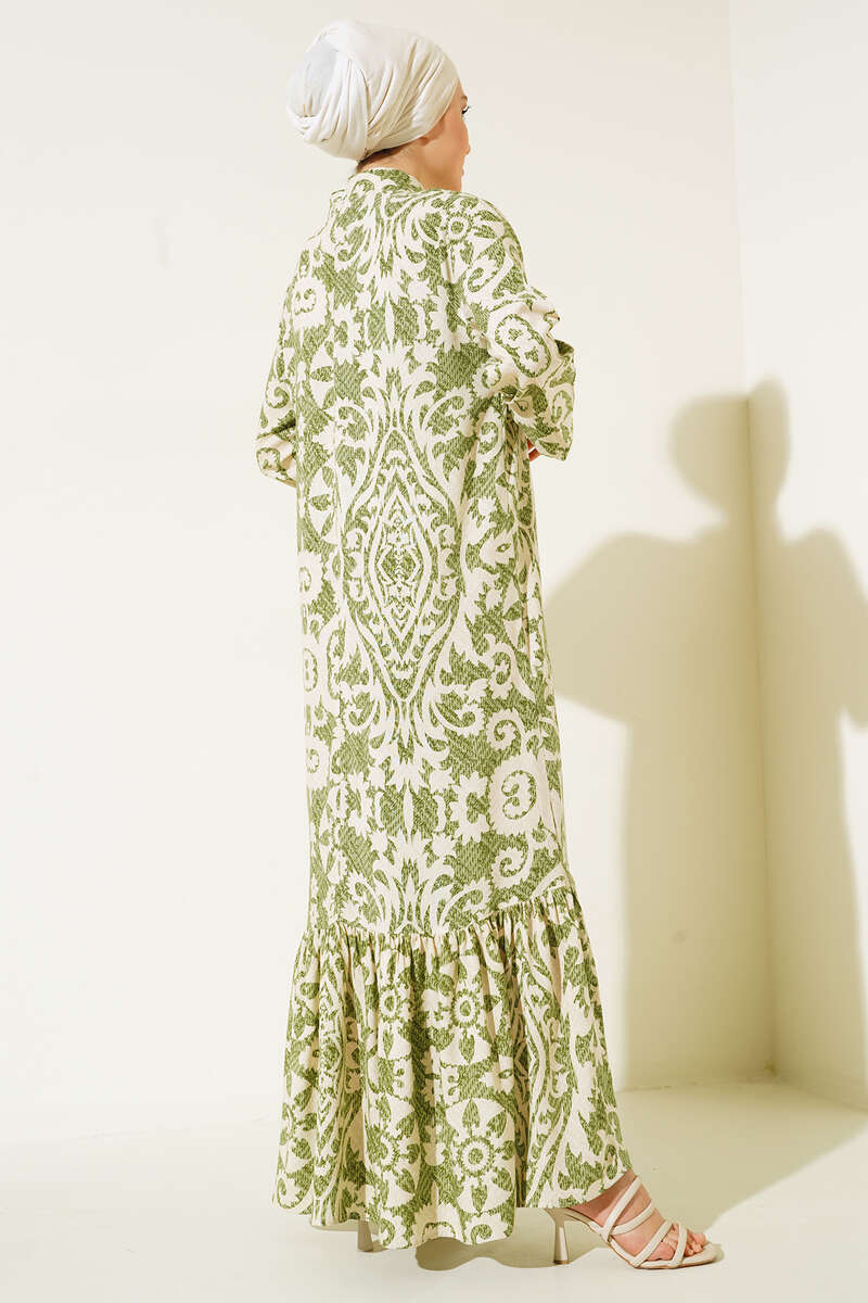 Yeni sezon yaz damgaları serisi elbisemiz harika desenleriyle farkını ortaya koyuyor. Hakim yaka elbisemiz sırt fermuarlıdır. Elbisemizin bilekleri lastiklidir.