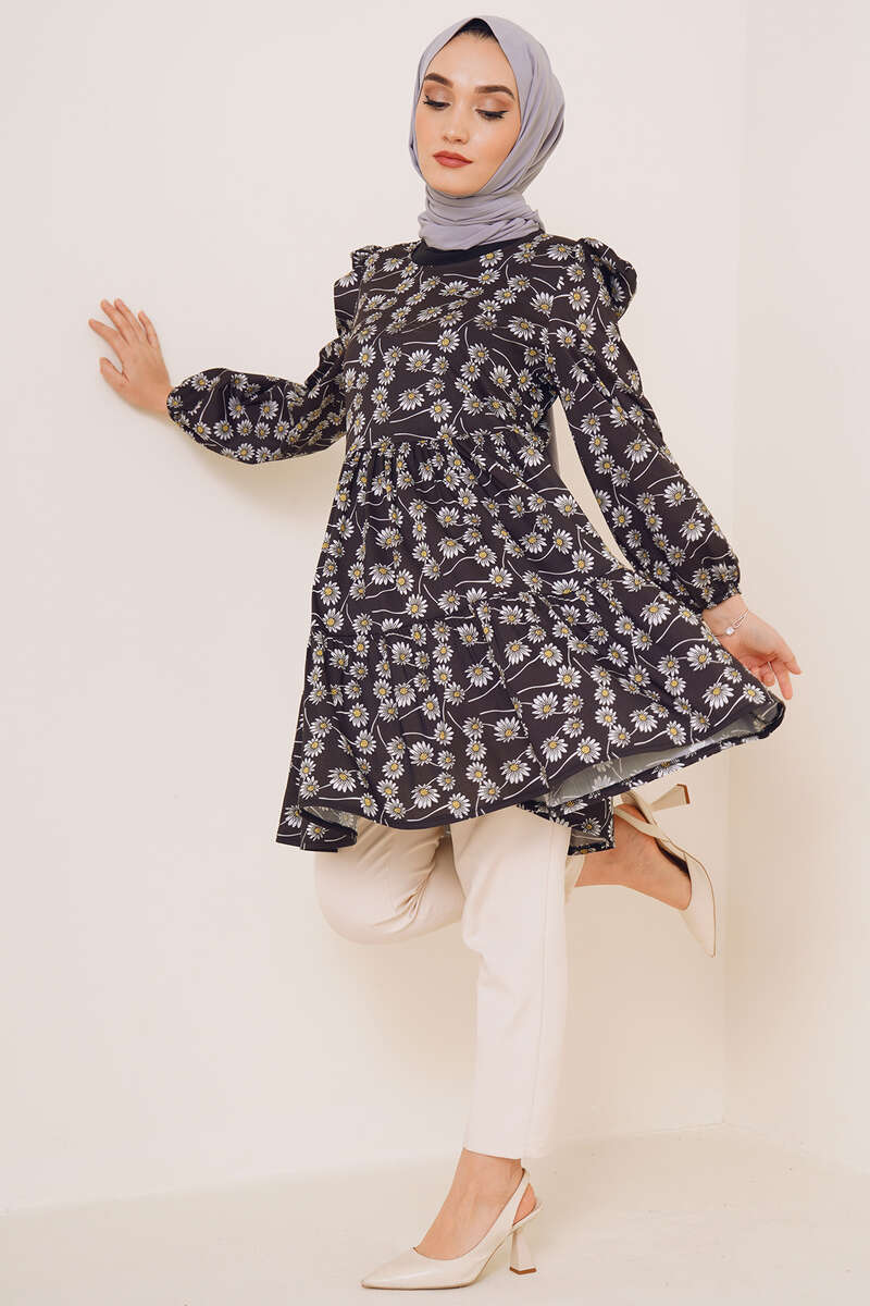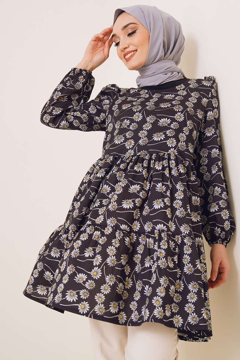 Yaz Desenleri Serisi Tunik Siyah