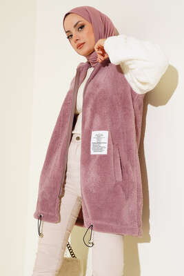 Yazı Armalı Peluş Hırka Gül Kurusu