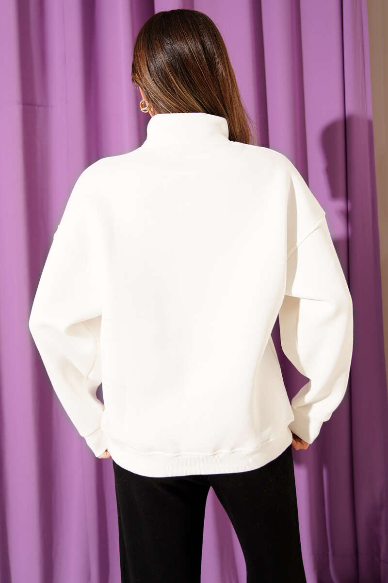 Yazı Nakışlı Fermuarlı Şardonlu Sweatshirt Bordo