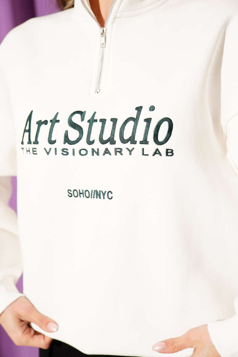 Yazı Nakışlı Fermuarlı Şardonlu Sweatshirt Lacivert