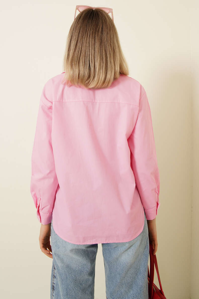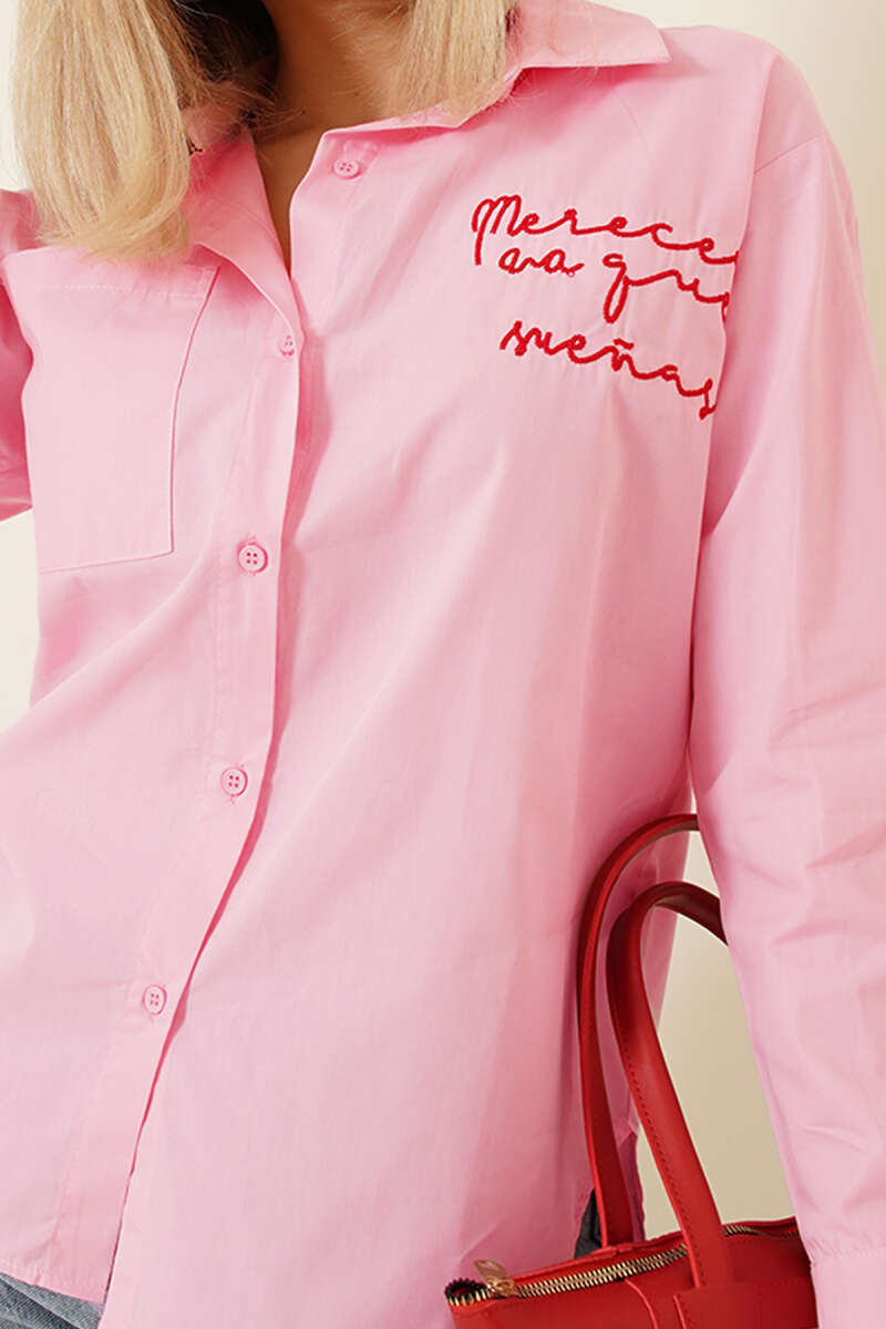 Yazı Nakışlı Tek Cepli Gömlek Pembe