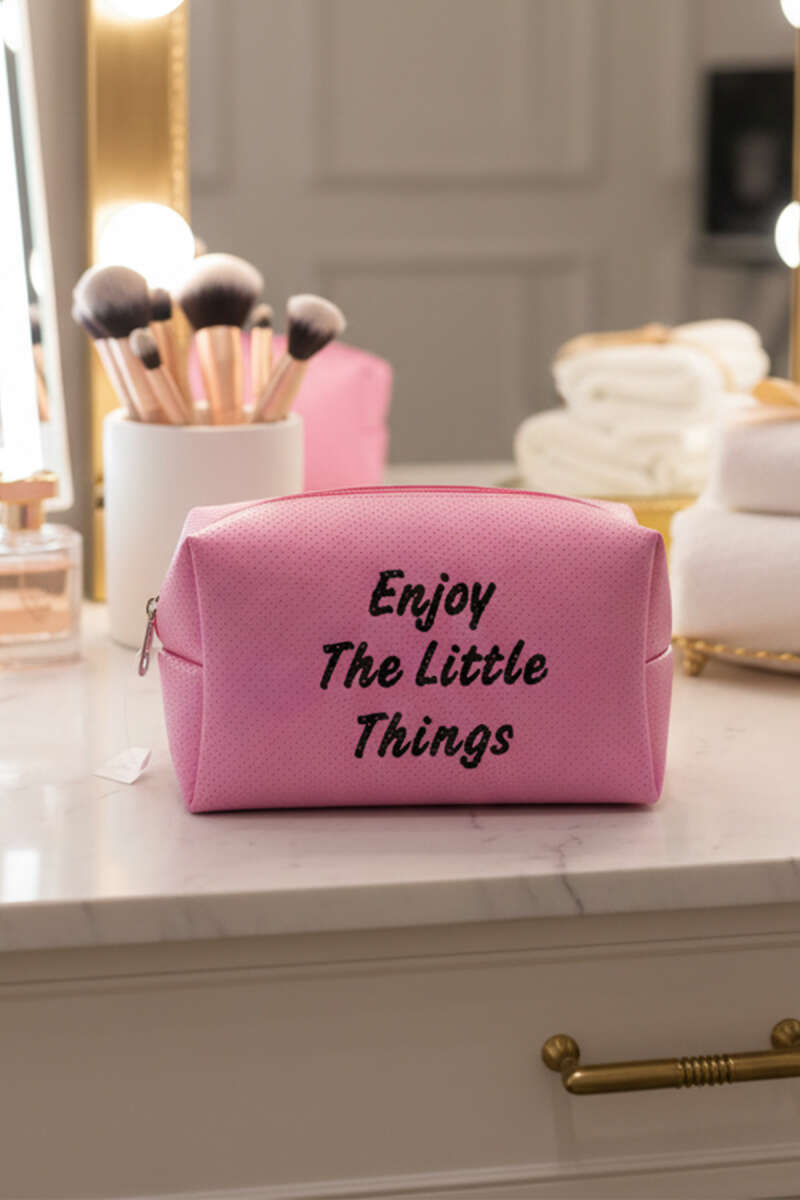 Yazılı Makyaj Çantası Pembe