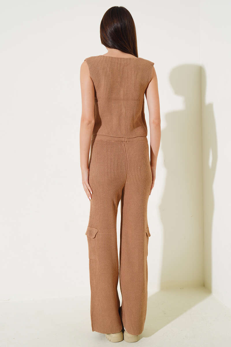 Yan Şeritli Fermuarlı İkili Takım Kahve