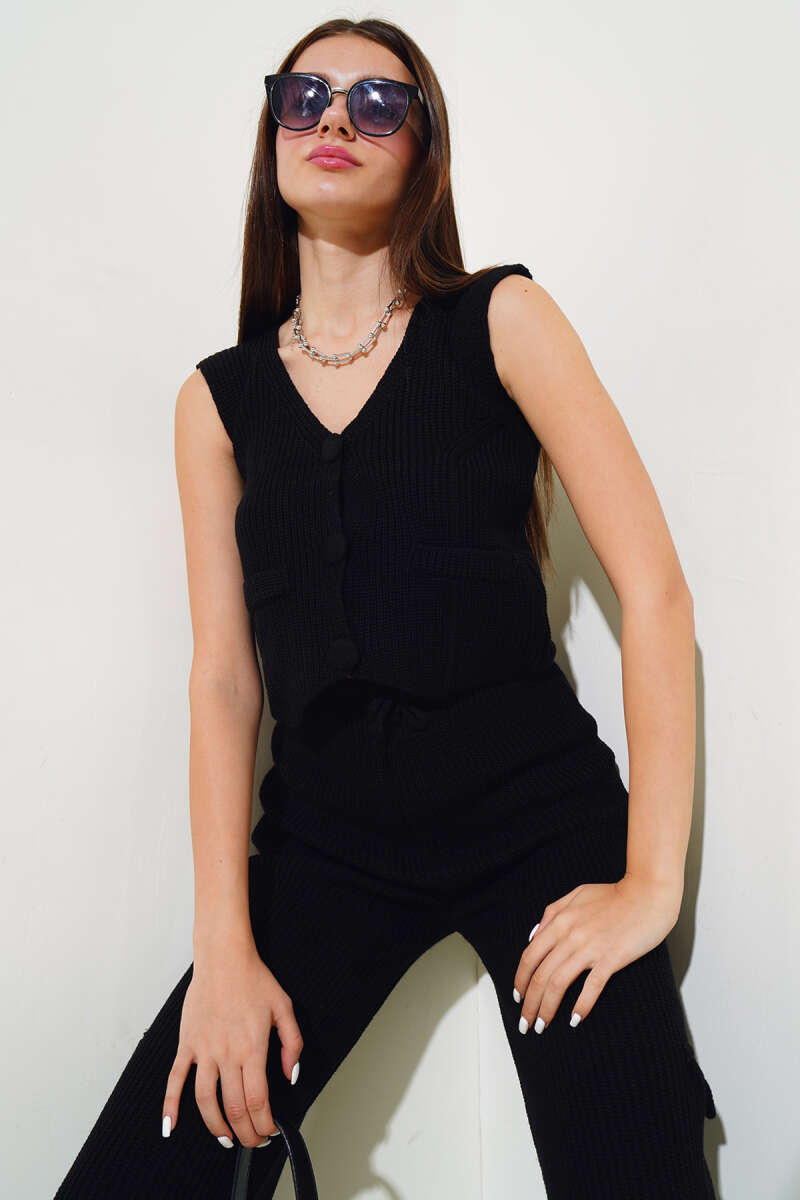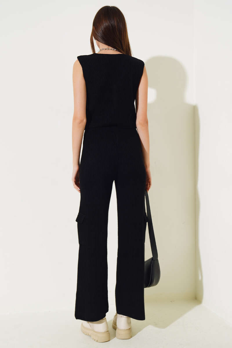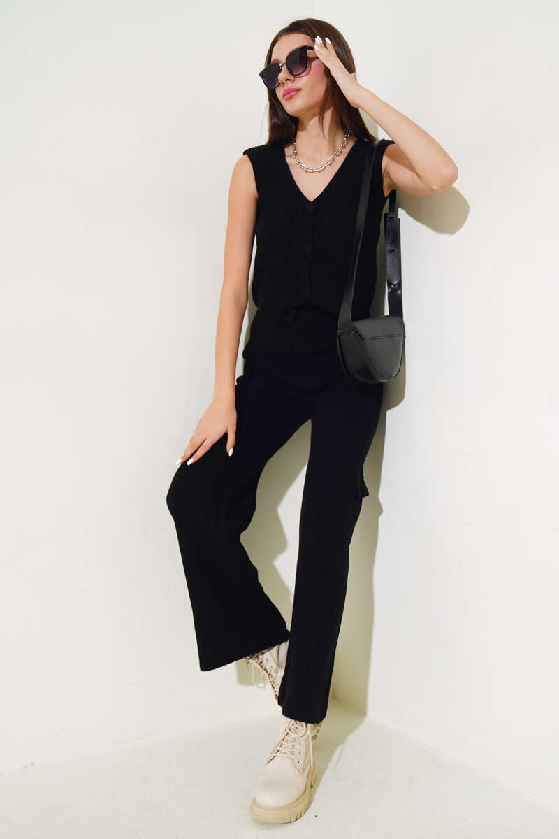 İp Bağlamalı Taşlı Scuba İkili Takım Siyah