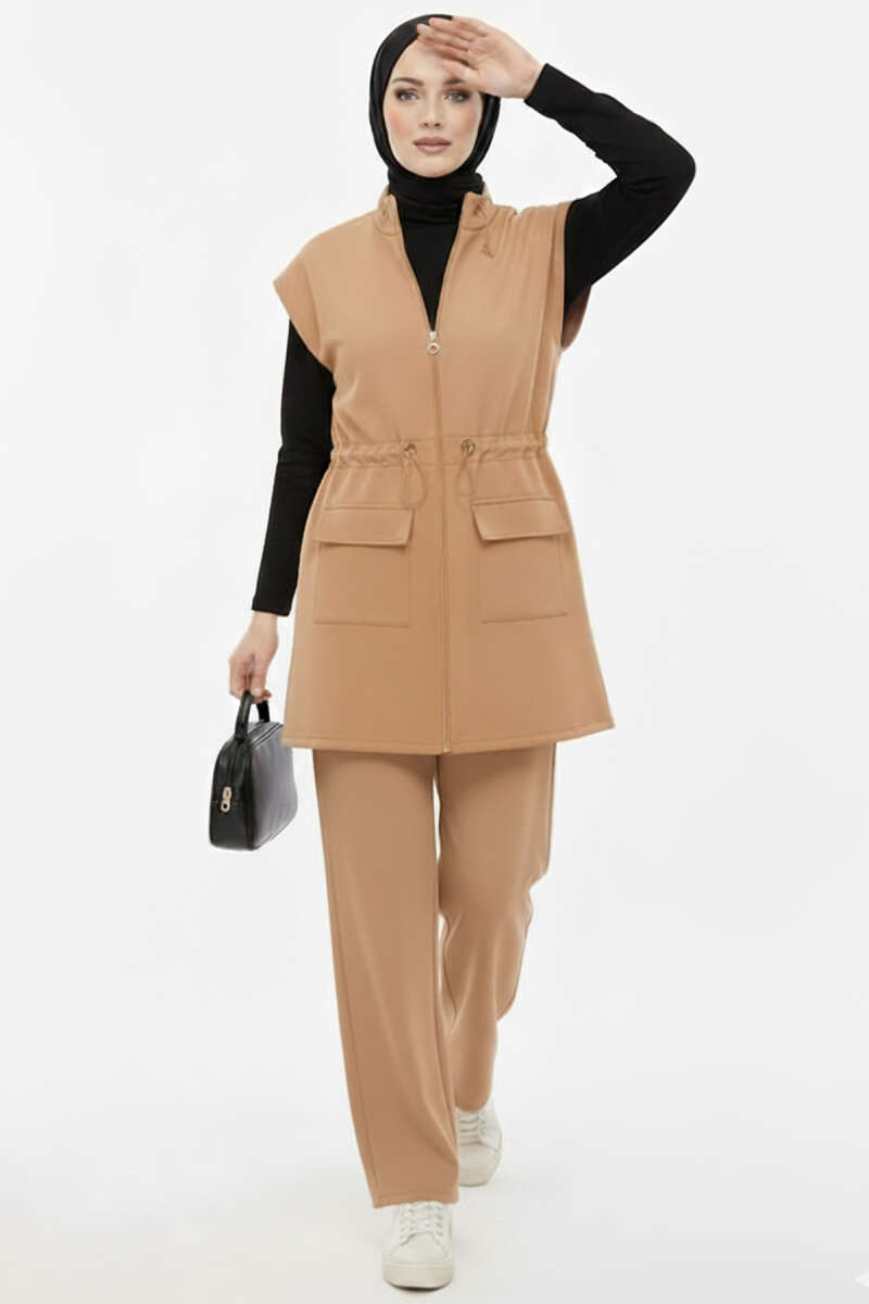 Önü Pileli Kemerli Scuba İkili Takım Haki