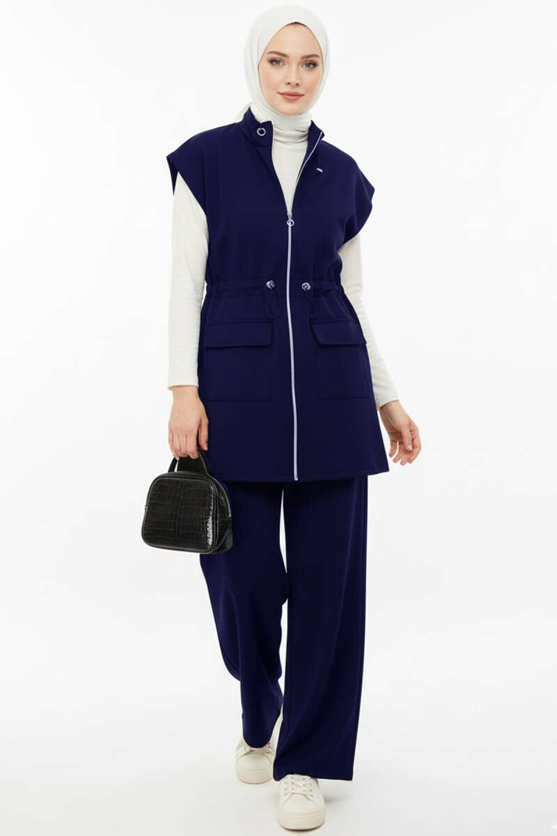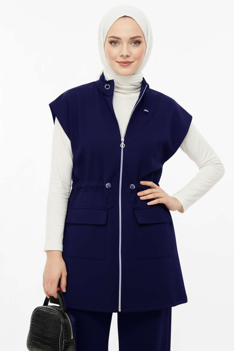 Fitilli Esnek Triko Kazak Lacivert