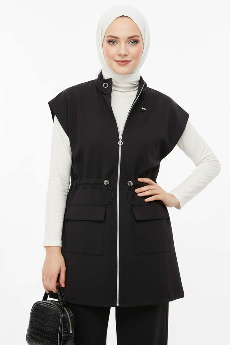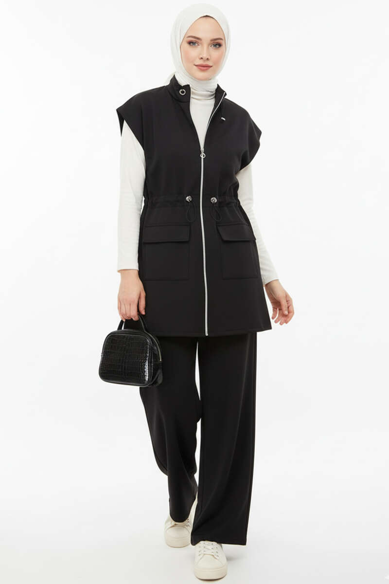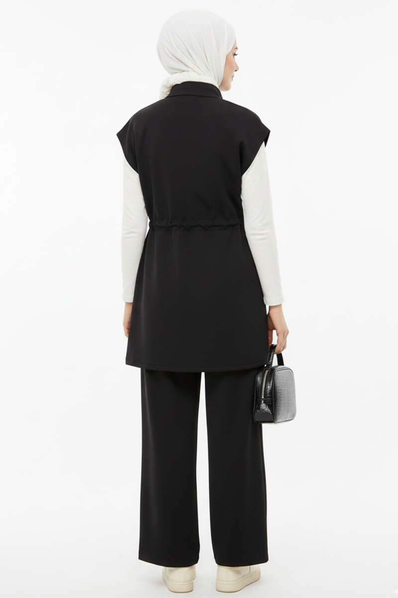 Önü Pileli Kemerli Scuba İkili Takım Siyah