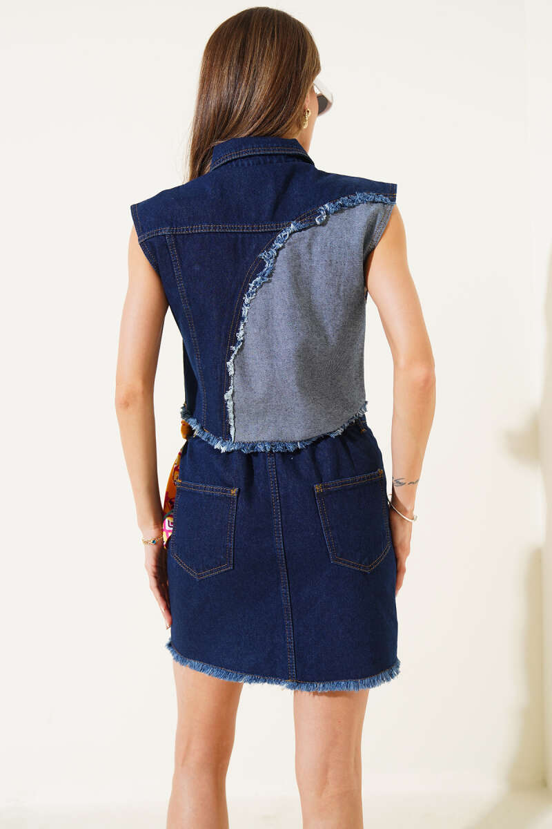 Yelekli Bel Lastikli Etekli Takım Koyu Mavi