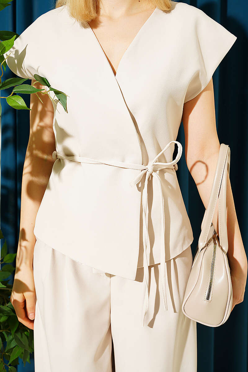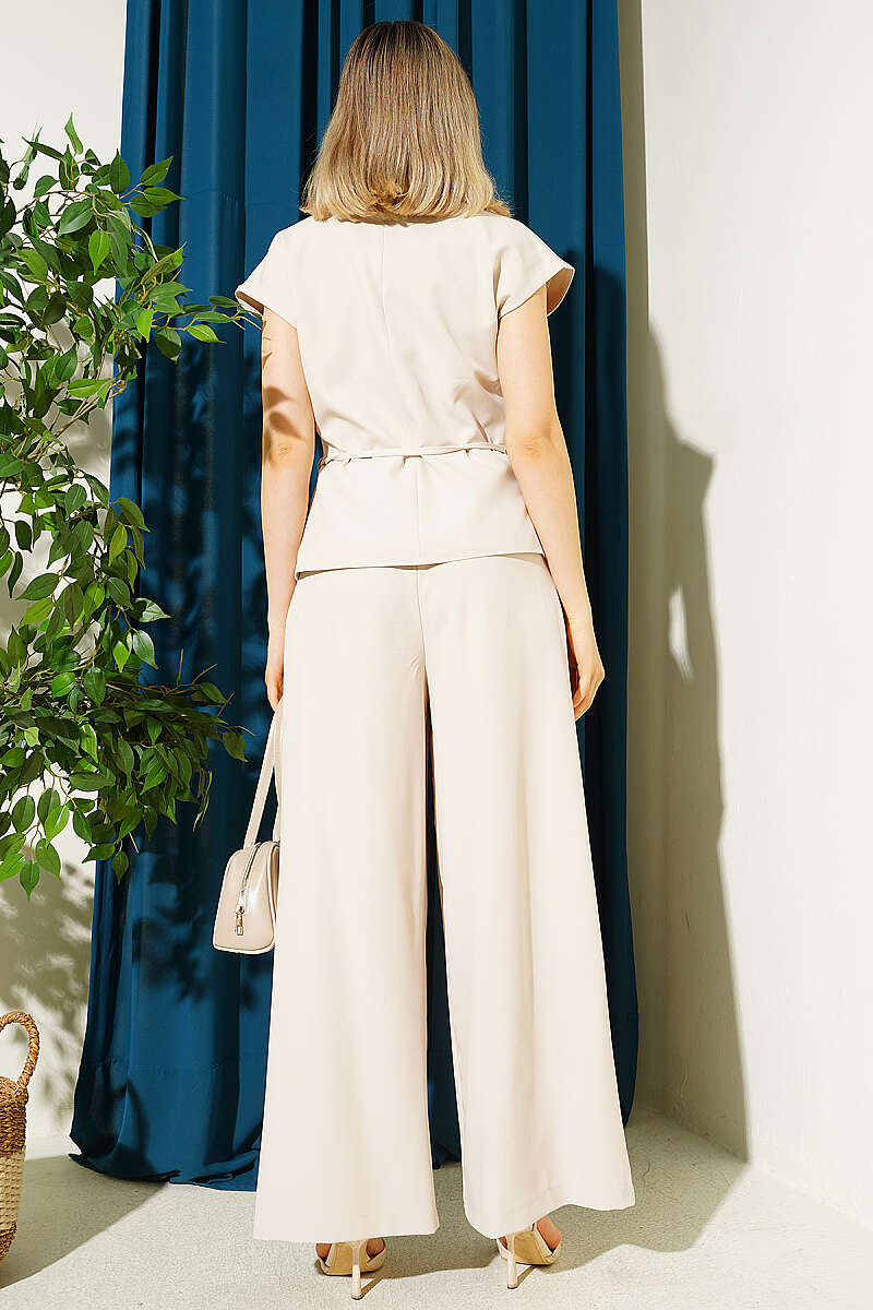 Yelekli İp Kuşaklı İkili Takım Bej