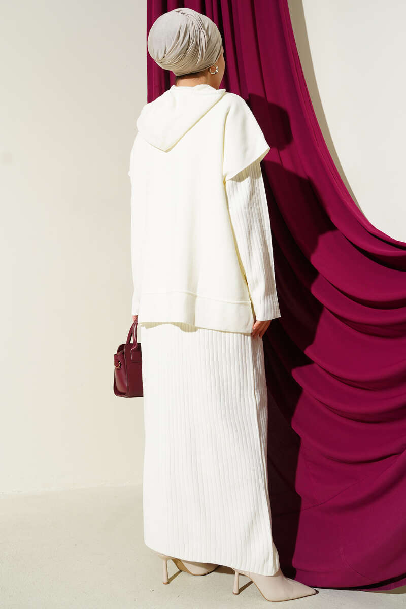 Gold Düğmeli Bel Tünelli İkili Takım Latte