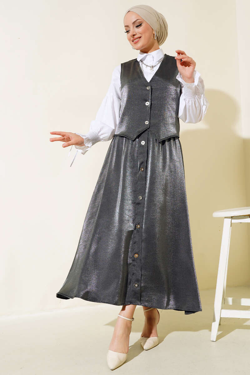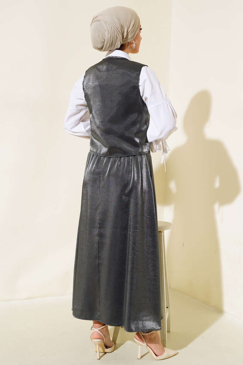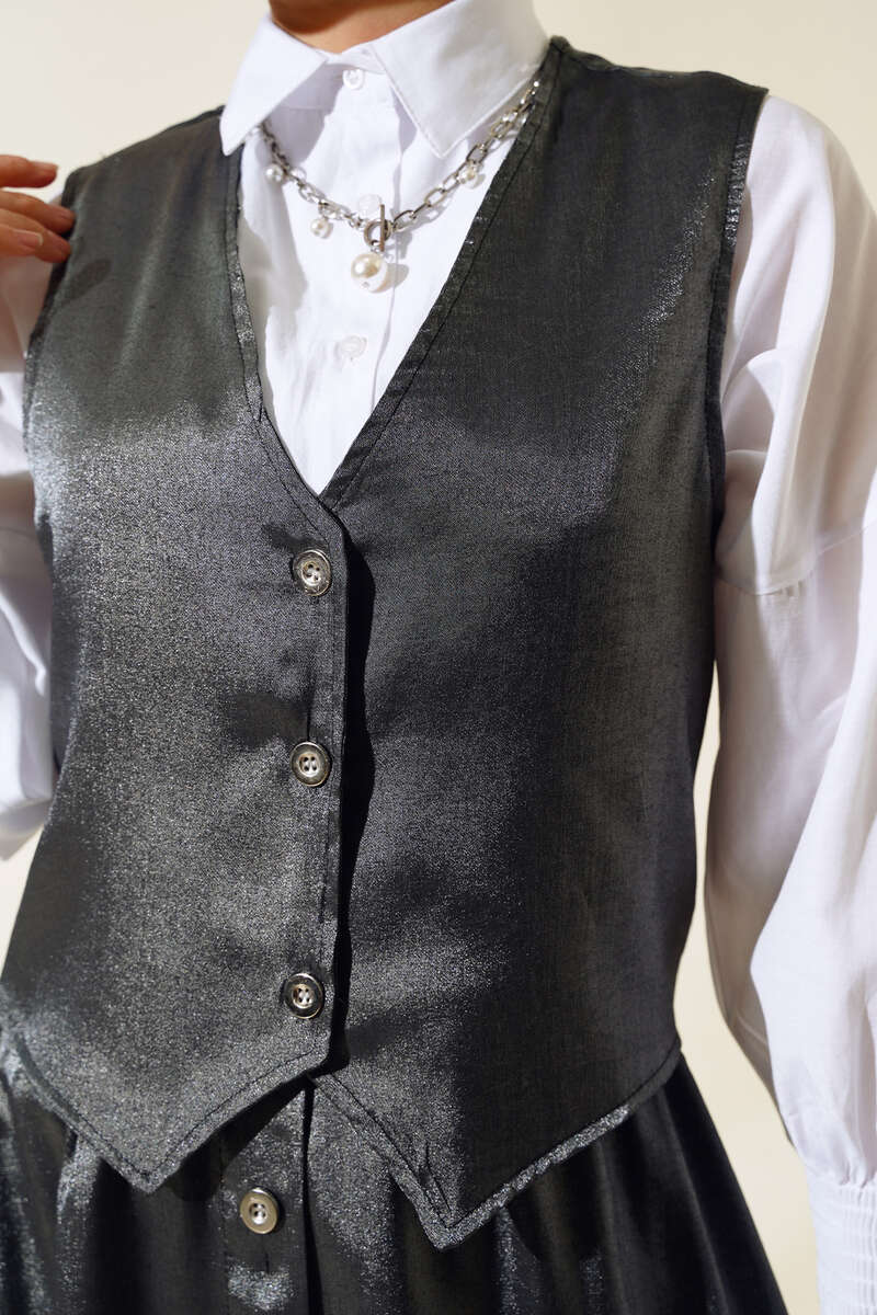 Yelekli Parlak İkili Takım Siyah