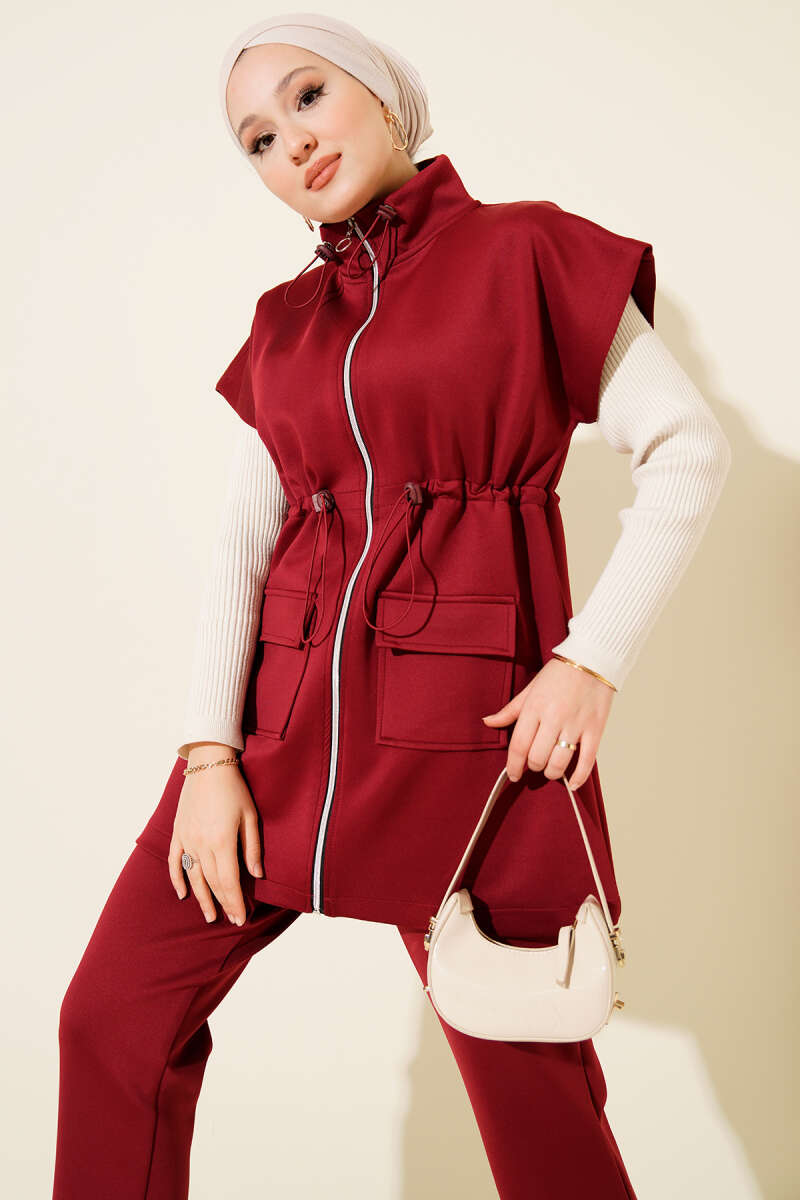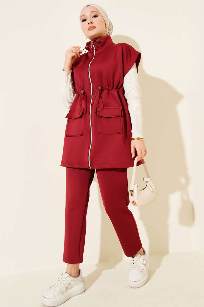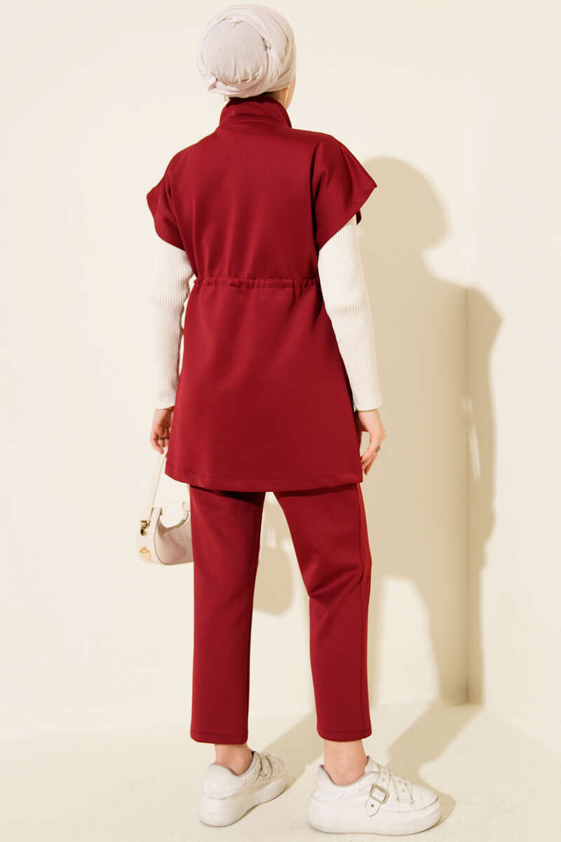 Yan Şerit Detaylı Triko İkili Takım Bordo