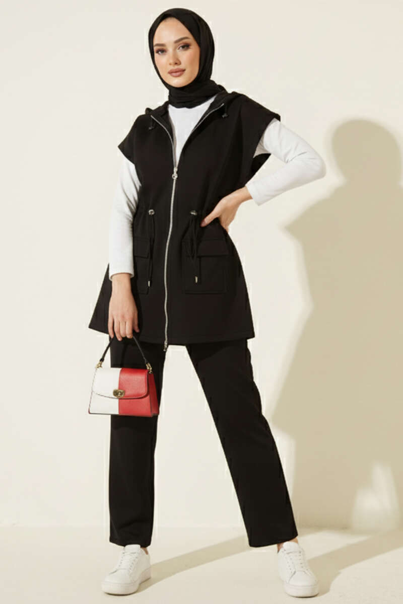 Loyşa Basic Fermuarlı Kapüşonlu İkili Takım Siyah