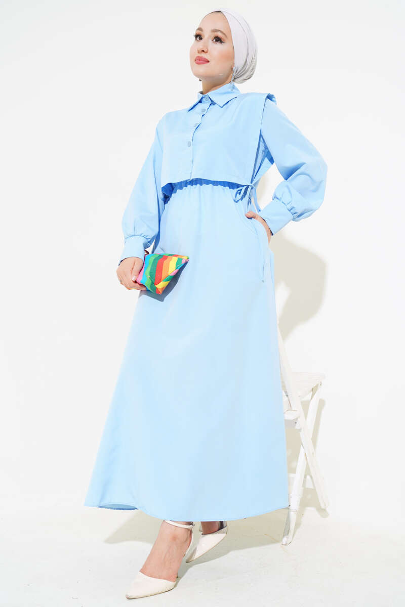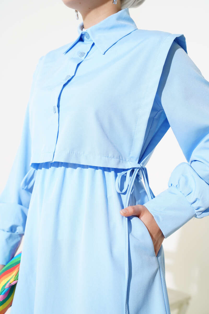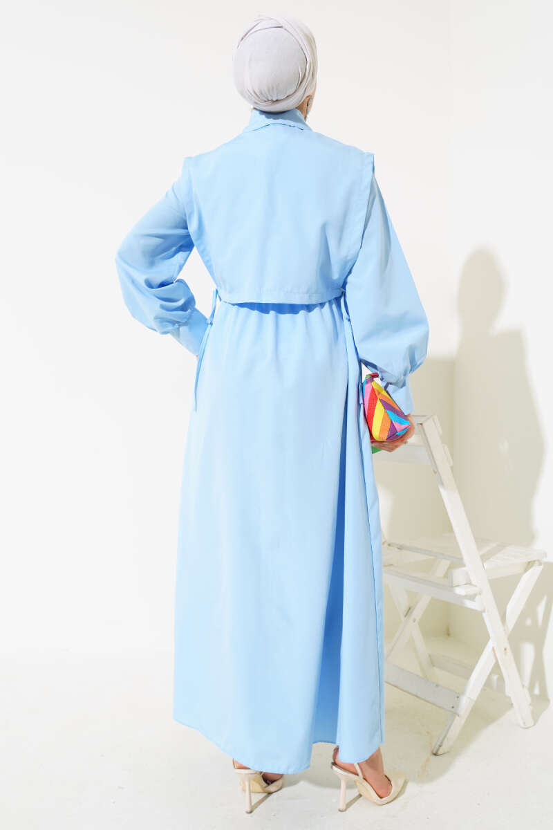 Yelekli Terikoton Elbise Bebe Mavi