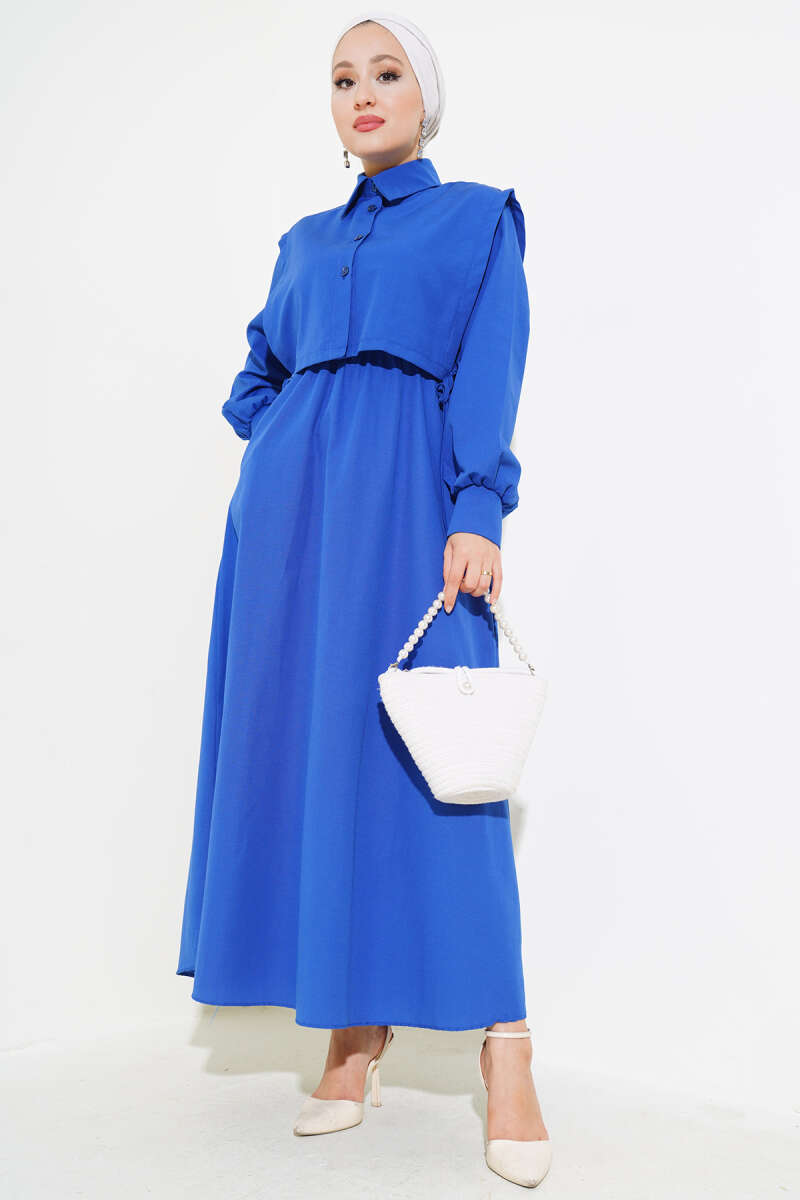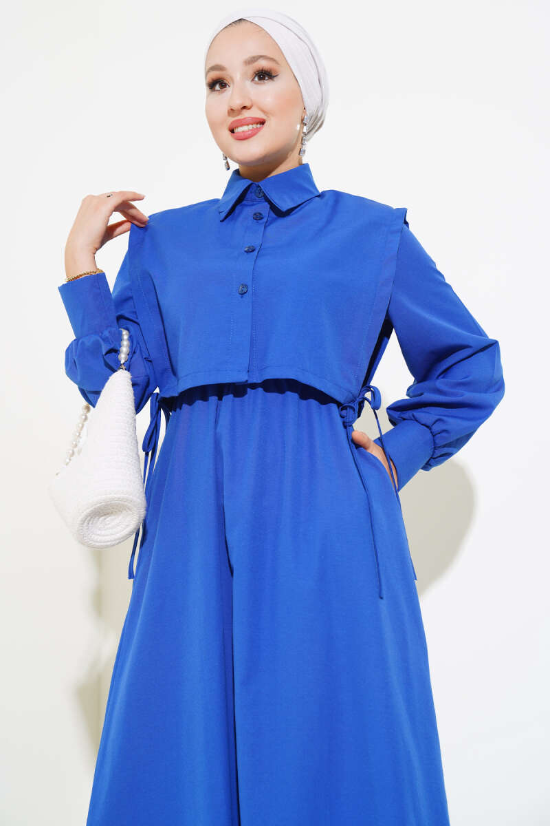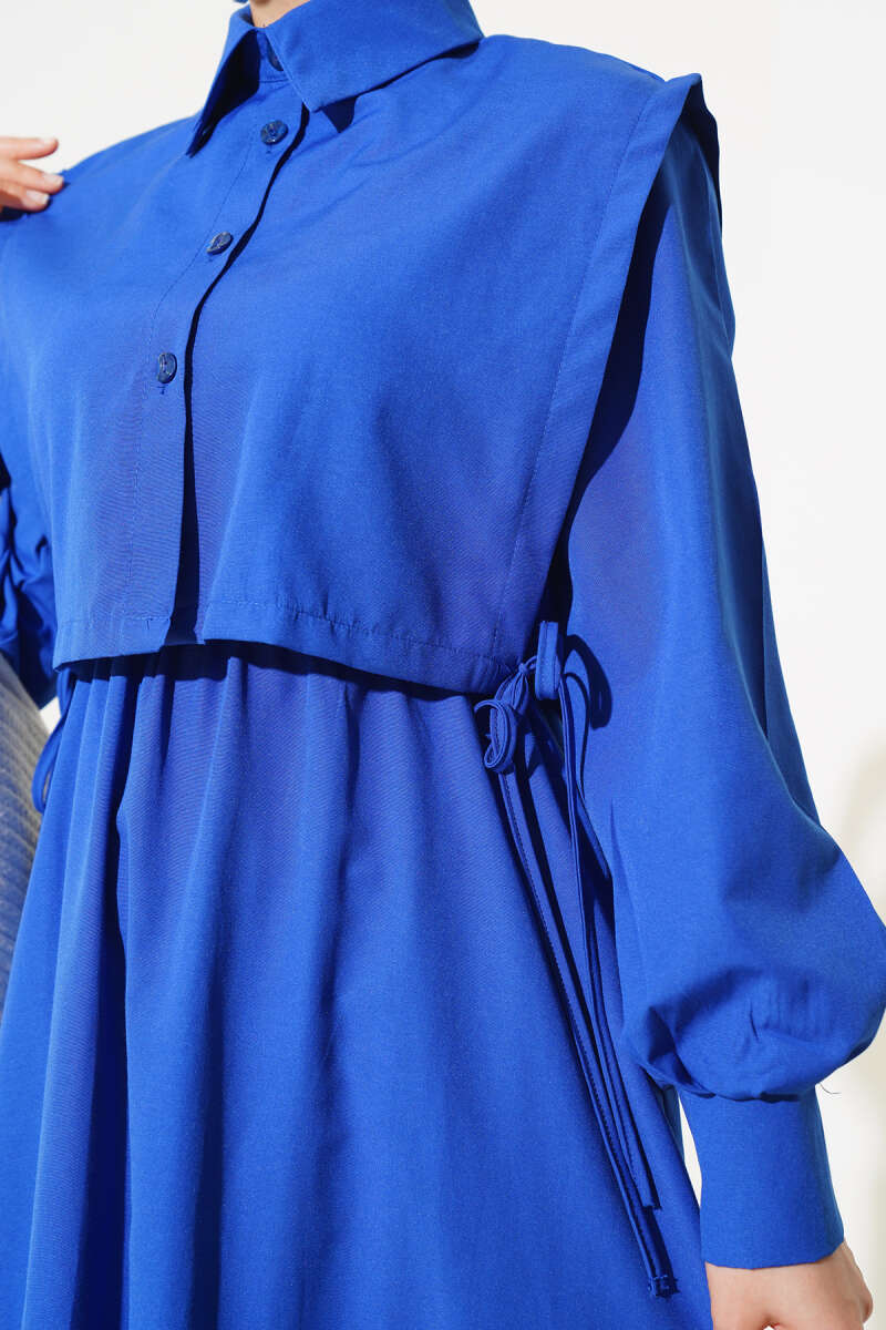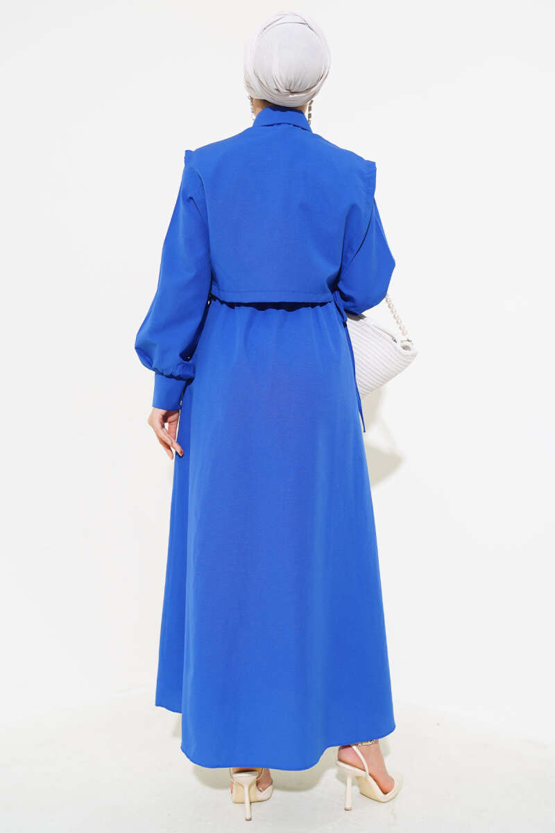 Kuşaklı Dik Fitilli Kaşe Elbise Lacivert
