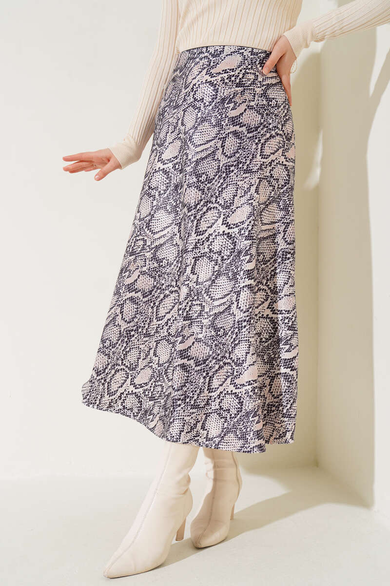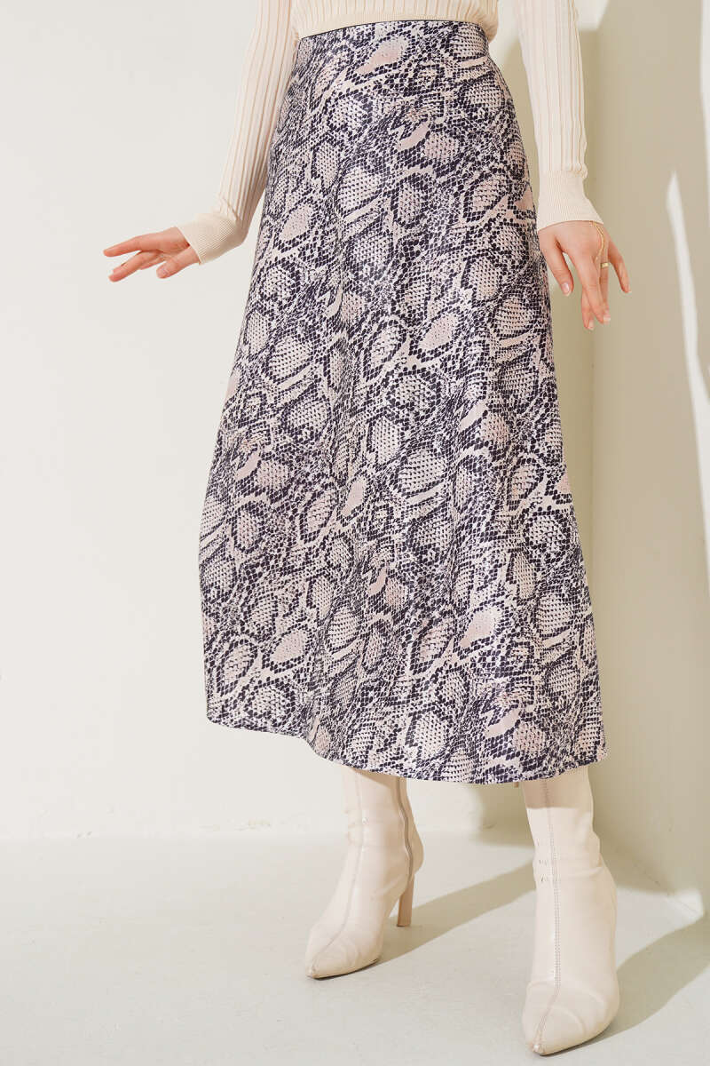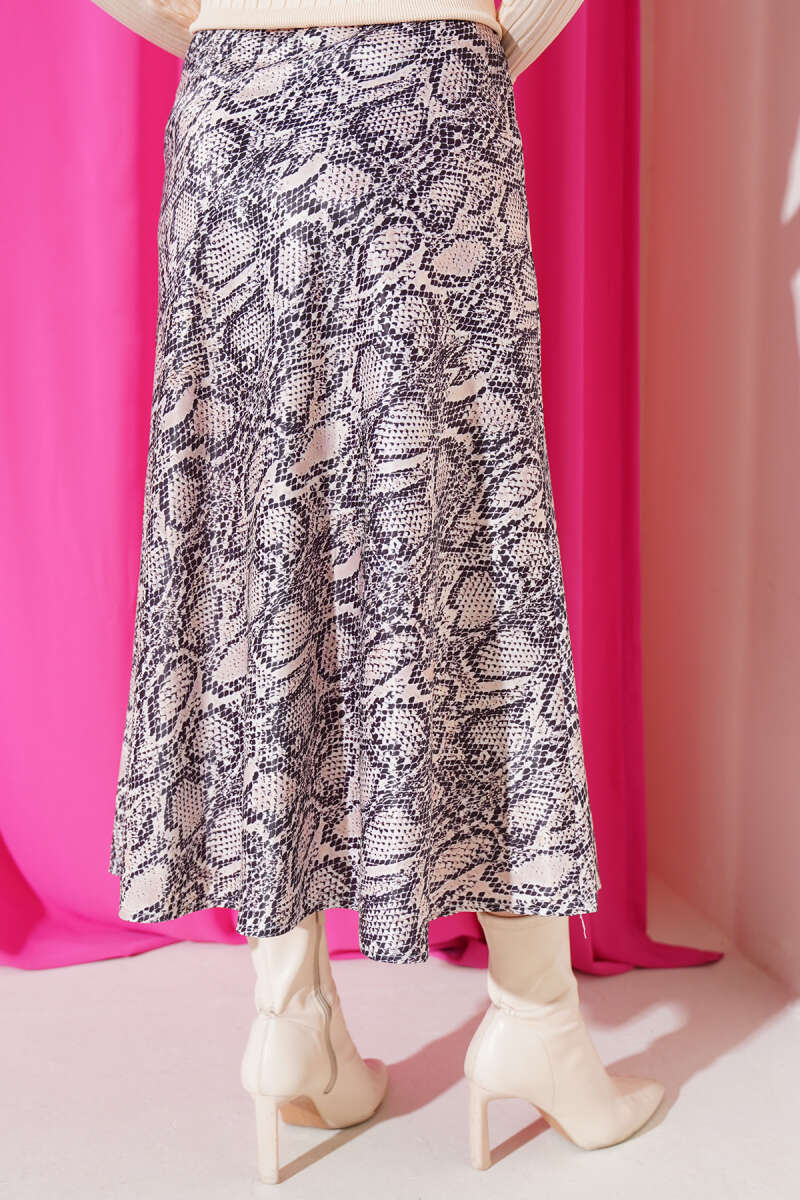 Kemer Aksesuarlı Ekoseli Etek Haki