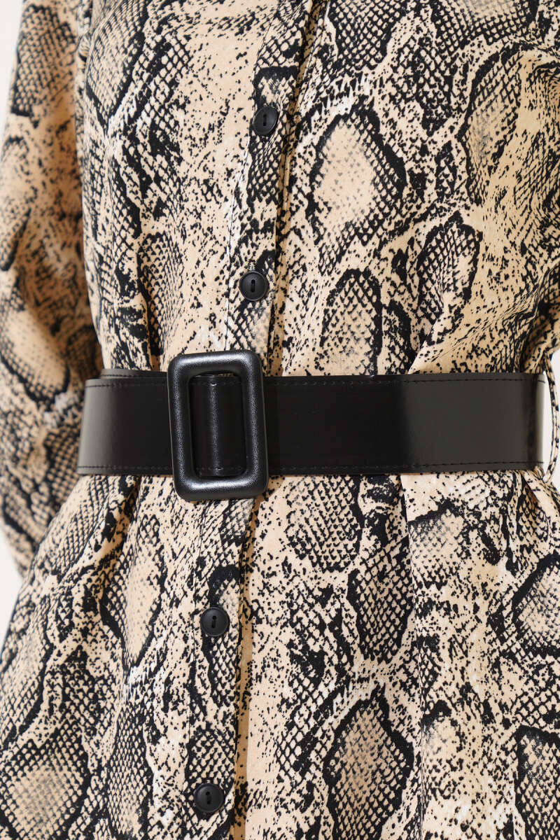 Peluş Yaka Kemerli Kaşe Panço Siyah