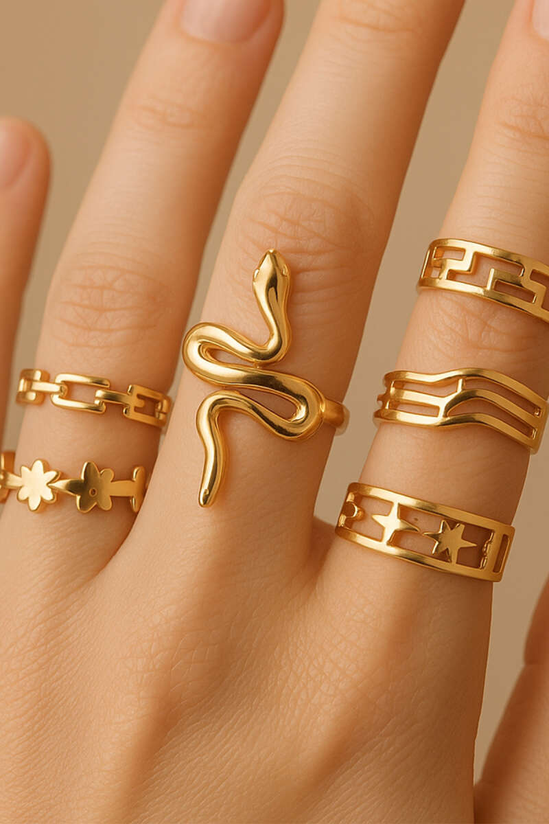 Gelince Haber VerPazarium kalite ve güvencesiyle beğenilerinize sunulan Yılan Figürlü 7'li Yüzük Seti, oldukça uygun bir aksesuar. Farklı kombinler ile kolaylıkla uyum sağlayacak olan Yılan Figürlü 7'li Yüzük Seti, kaliteli ve dayanıklı malzemesi ile uzun yıllar en şık kıyafetlerinizi mükemmel bir şekilde tamamlayacak!